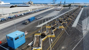 Après la mer, le rail. La visite s’est poursuivie sur le terminal ferroviaire [2] flambant neuf du port de commerce. Doté d’une technologie innovante de chargement horizontal, ce terminal permet de charger les remorques sans grue, réduisant ainsi les coûts et les délais. Opéré par l’entreprise VIIA (groupe SNCF), ce site de plus de 6 hectares vise à quasiment tripler le nombre de semi-remorques et conteneurs transportés par an entre Sète et Calais, passant de 15 000 à 40 000. Cela représente autant de camions évités sur les routes et 30 000 tonnes de CO₂ non rejetées chaque année.