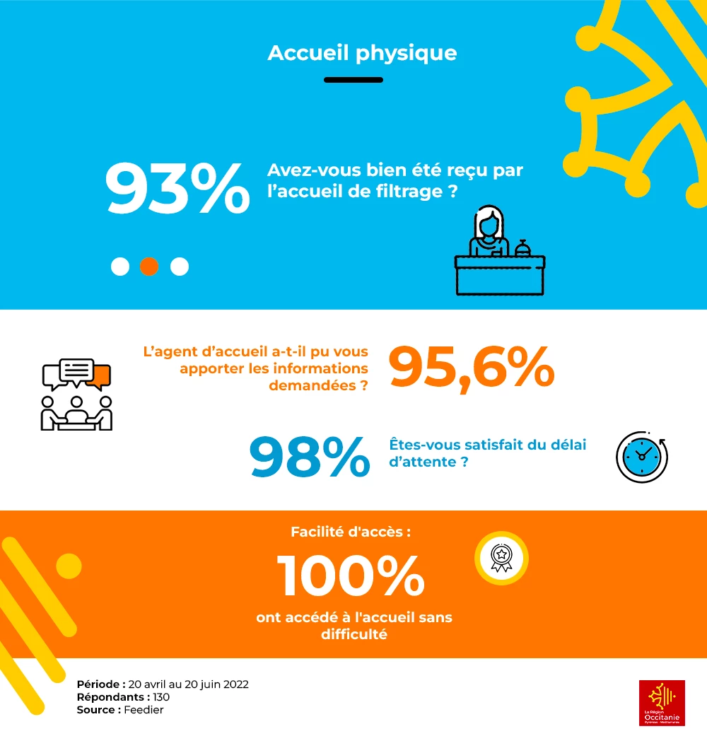 Le service Accueil et Information des Usagers a réalisé en 2022 une enquête de satisfaction auprès des visiteurs reçus à l’Hôtel de Région de Toulouse.