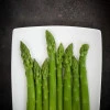 Asperges blanches, croquant de pousses d’épinard et ventrèche de porc noir de Bigorre