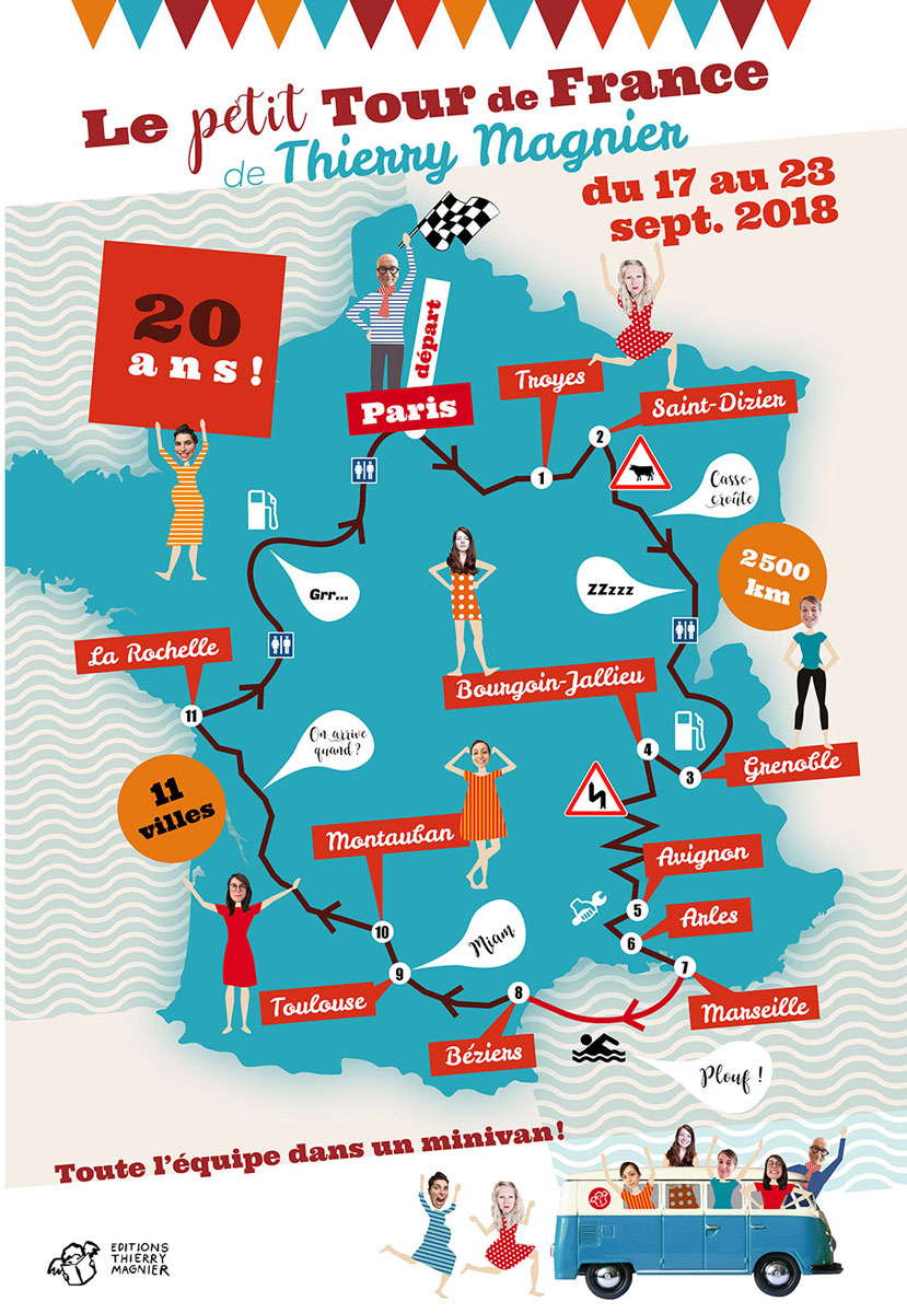 Pour fêter leurs 20 ans d’existence, les éditions jeunesse Thierry Magnier prennent la route. Leur « Petit tour de France » en 12 étapes fait une halte à Montauban le samedi 22 septembre 2018.
