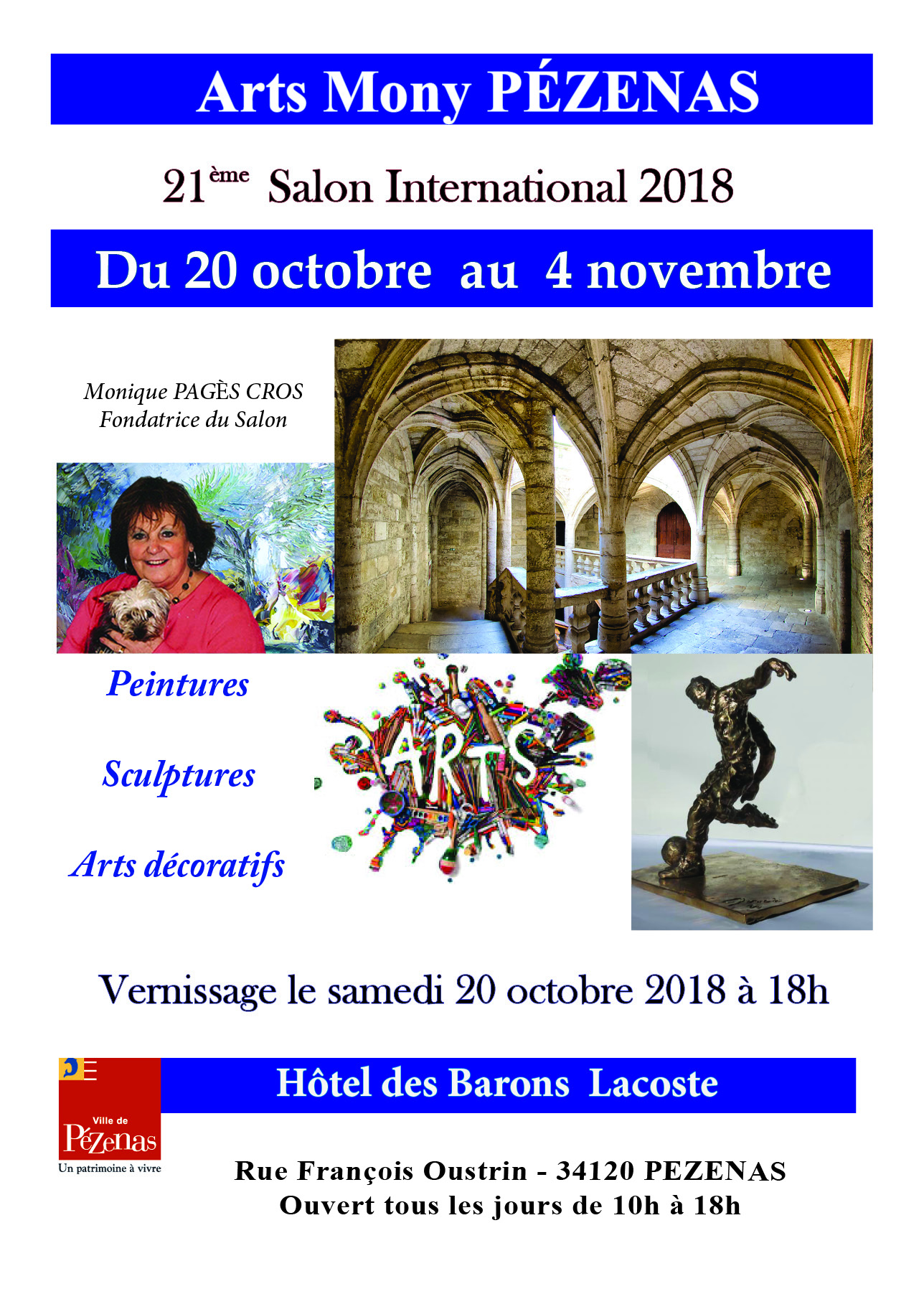 21ème Salon Arts Mony Pézenas du 20 octobre au 4 novembre 2018