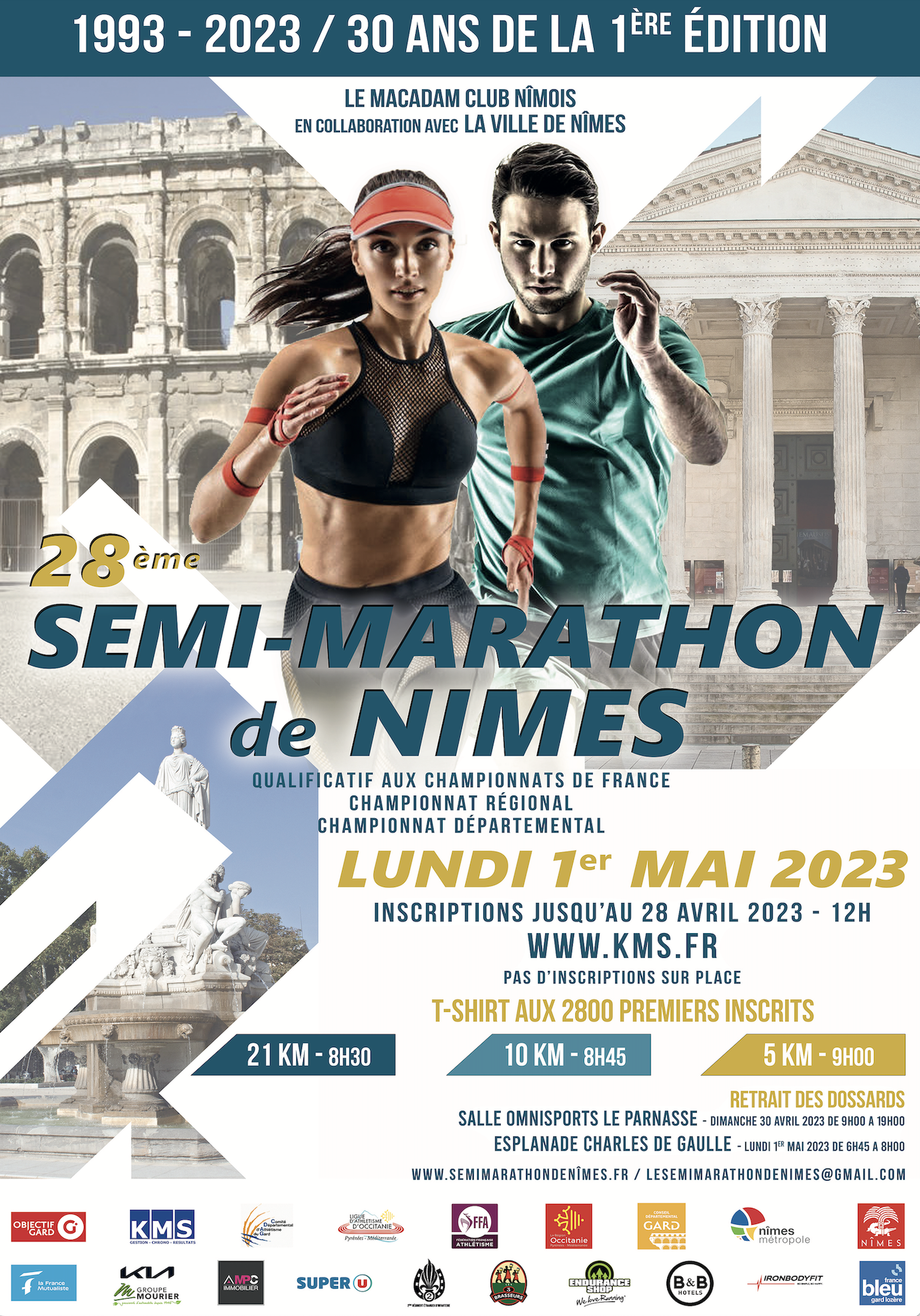 28ème édition du Semi-Marathon de Nîmes organisé par le Macadam Club Nîmois en collaboration avec le Ville de Nîmes