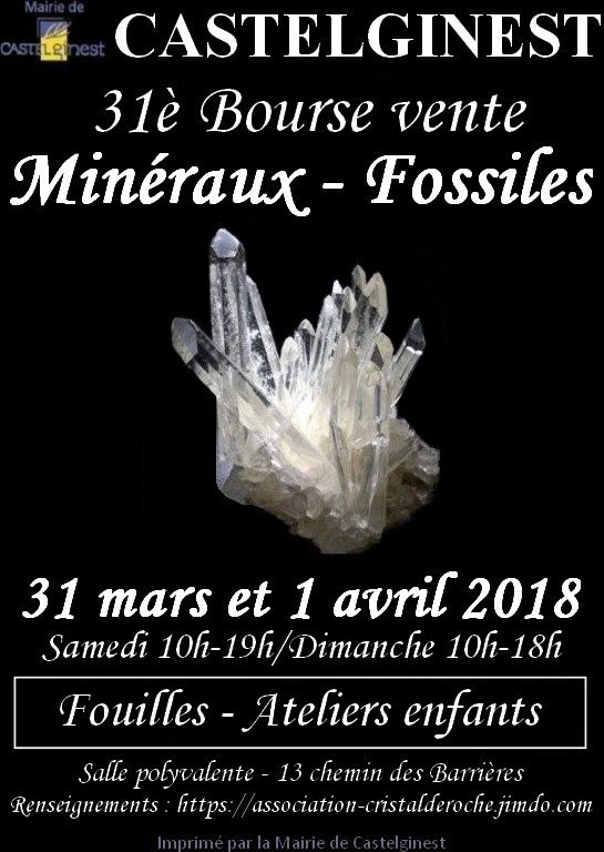 Minéraux et fossiles d’exception à Castelginest Samedi 31mars, dimanche 1er avril