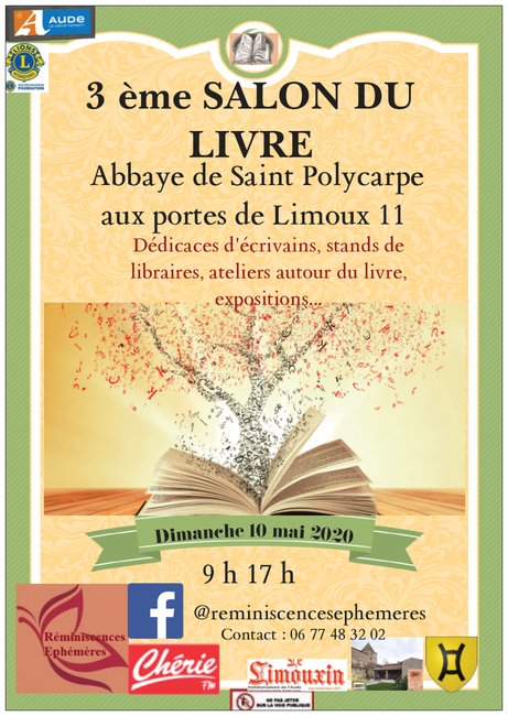 3ème Salon et rencontre autour du livre dimanche 10 mai à l’ Abbaye de St Polycarpe, aux portes de Limoux 11.