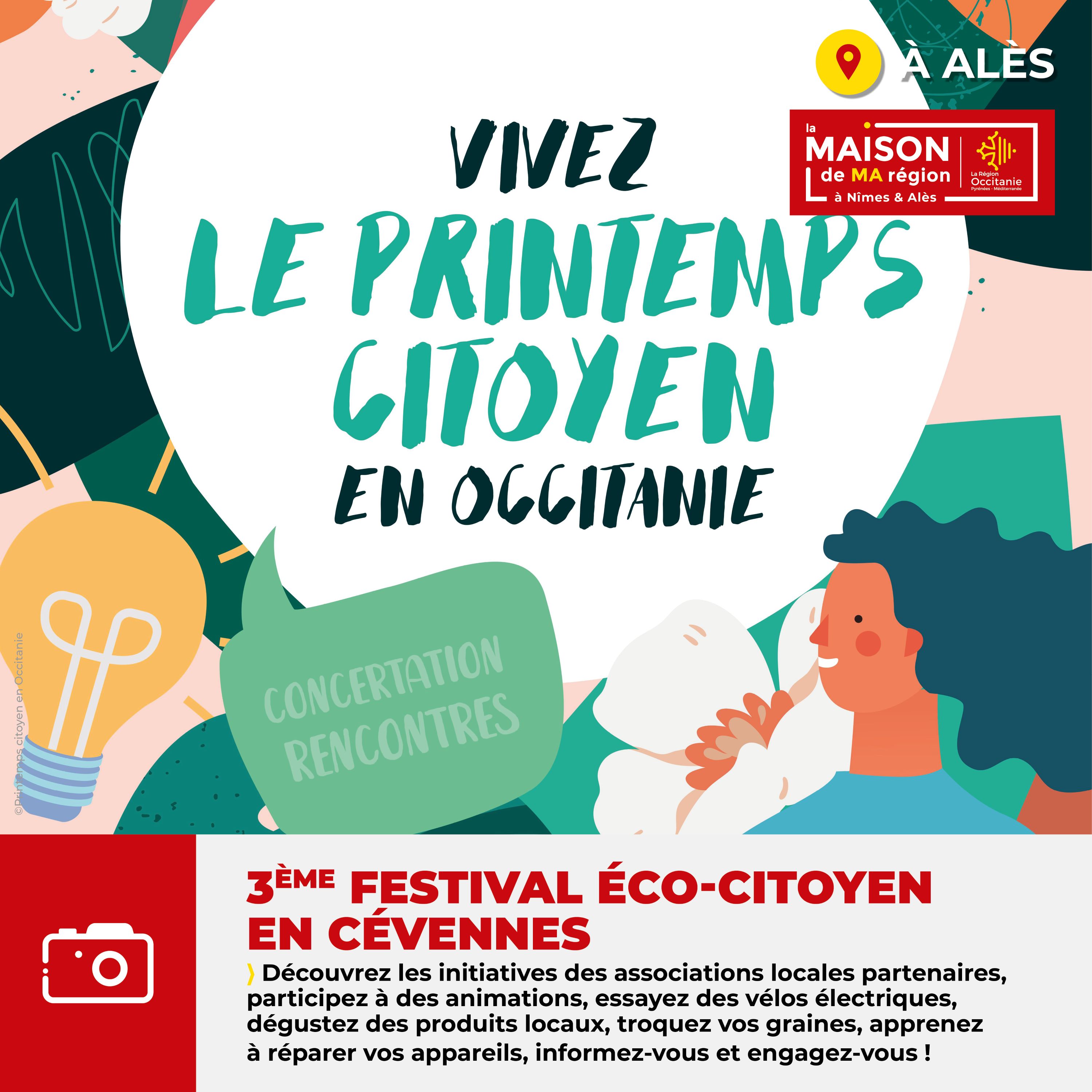 Dans ce cadre, la Maison de Ma Région à Alès, avec le soutien d’Alès agglomération et la ville d’Alès, et en partenariat avec les acteurs locaux engagés, vous invite au 3ème Festival écocitoyen en Cévennes, mercredi 19 juin de 11h30 à 18h sur la place des Martyrs de la résistance. (Initialement prévu le 15 mai et reporté le 19 juin)