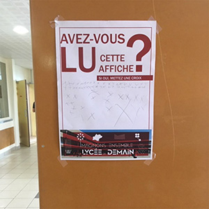 Par exemple, lorsqu’ils existent, les écrans qui diffusent les informations à l’entrée du lycée sont regardés par les lycéen·ne·s à leur arrivée (en particulier pour connaître les professeurs absents, mais cela permet de passer d’autres informations).