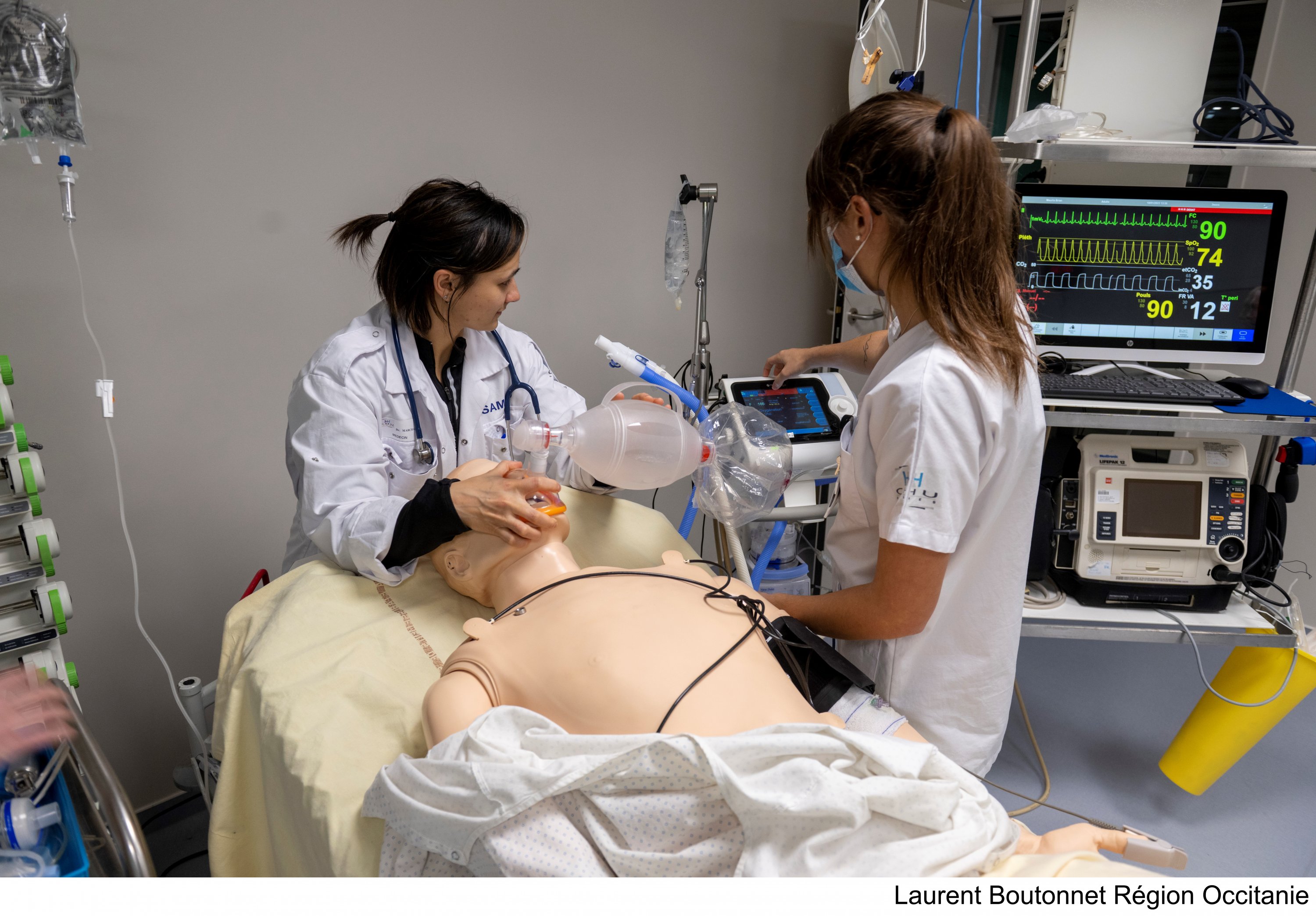 Pour adapter les locaux aux évolutions pédagogiques sur le campus nîmois, la formation par simulation est développée avec l’extension du centre de simulation multidisciplinaire hospitalo-universitaire de Nîmes (SimHU Nîmes). Accouchement, échographie, réanimation, pédiatrie, néonatalogie… : sur 1 000 m2, 10 salles de simulation sont pré-équipées avec matériel et mannequins haute-fidélité, pour appréhender des situations et des gestes médicaux avant la pratique sur les patients.