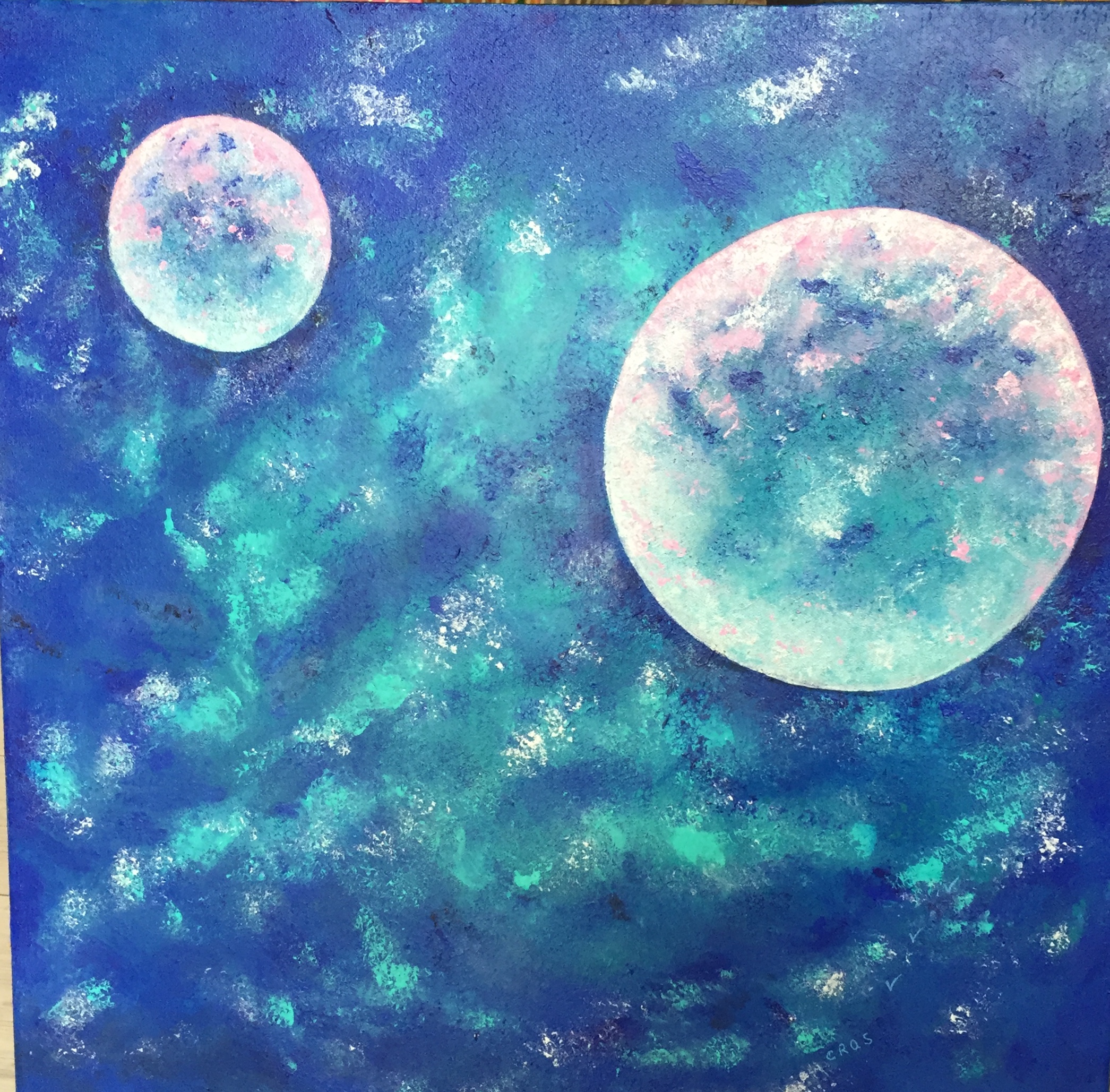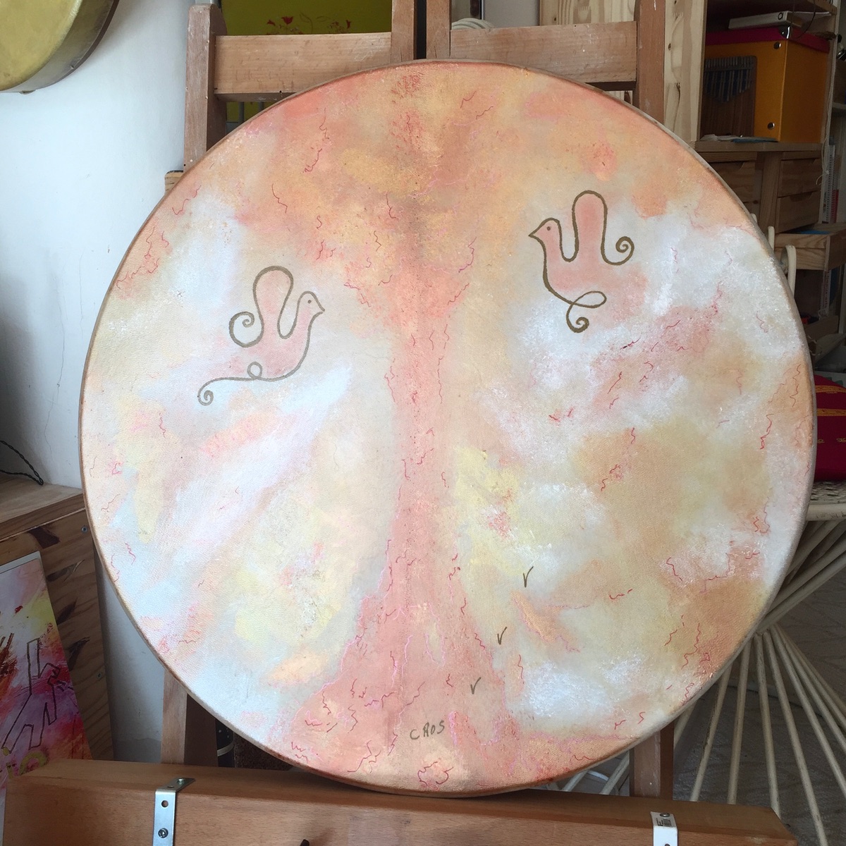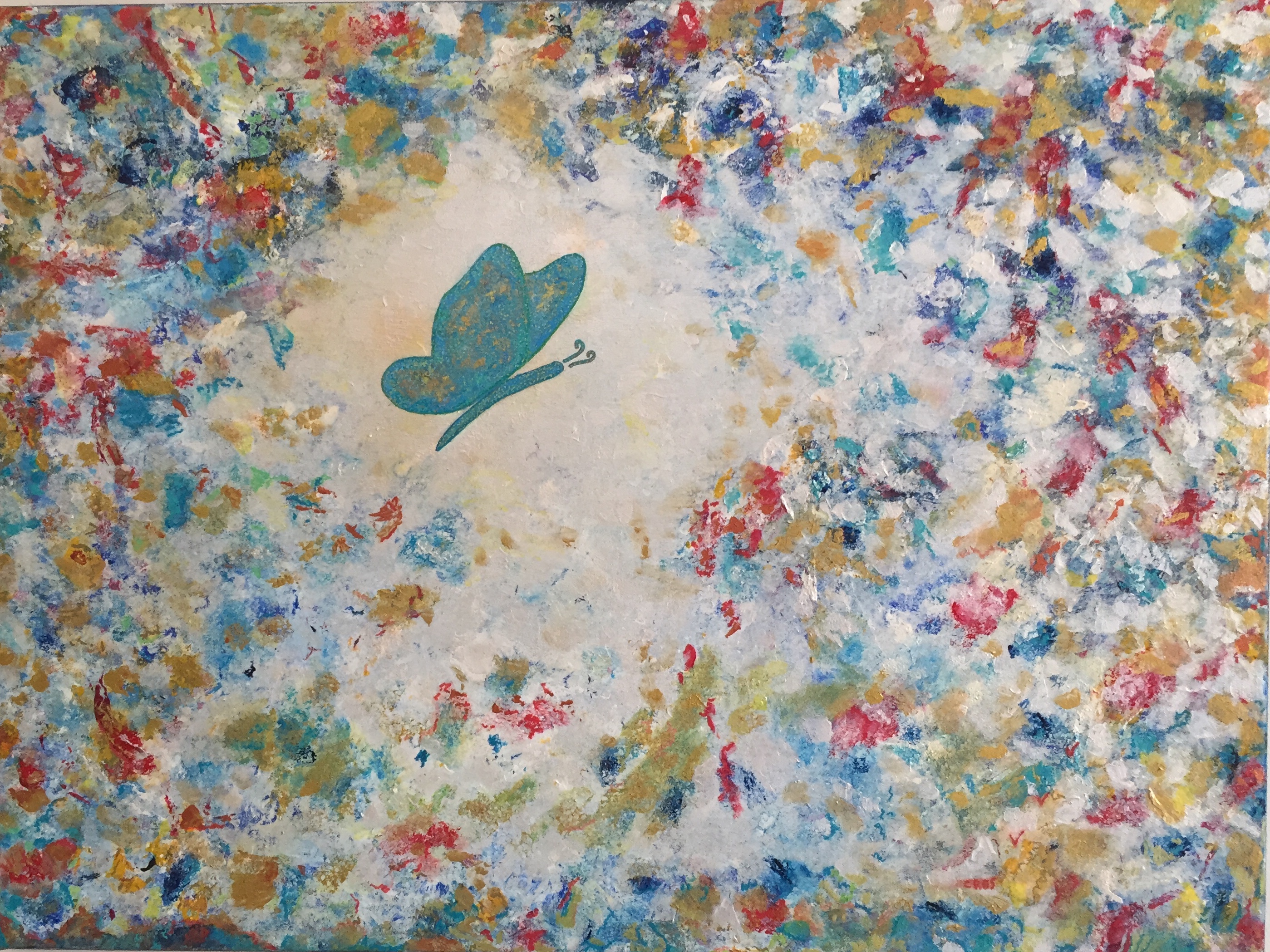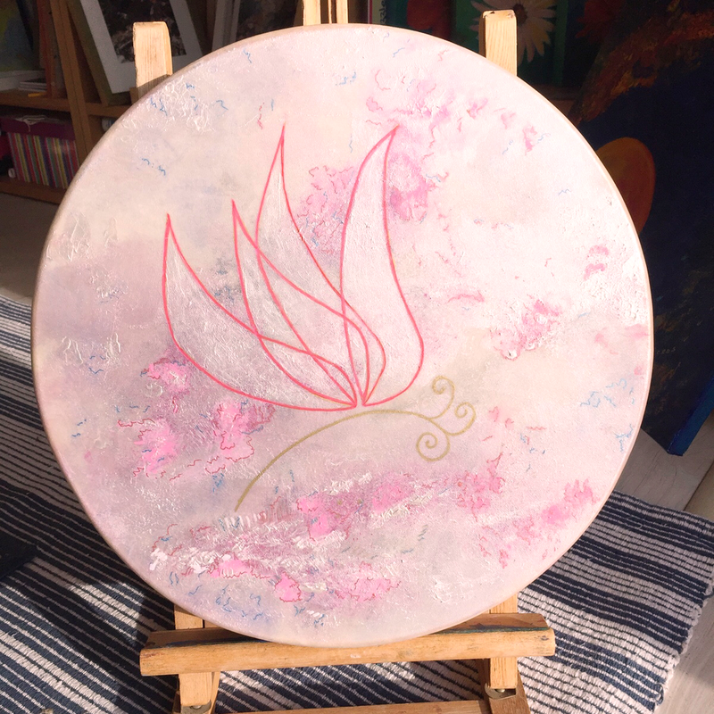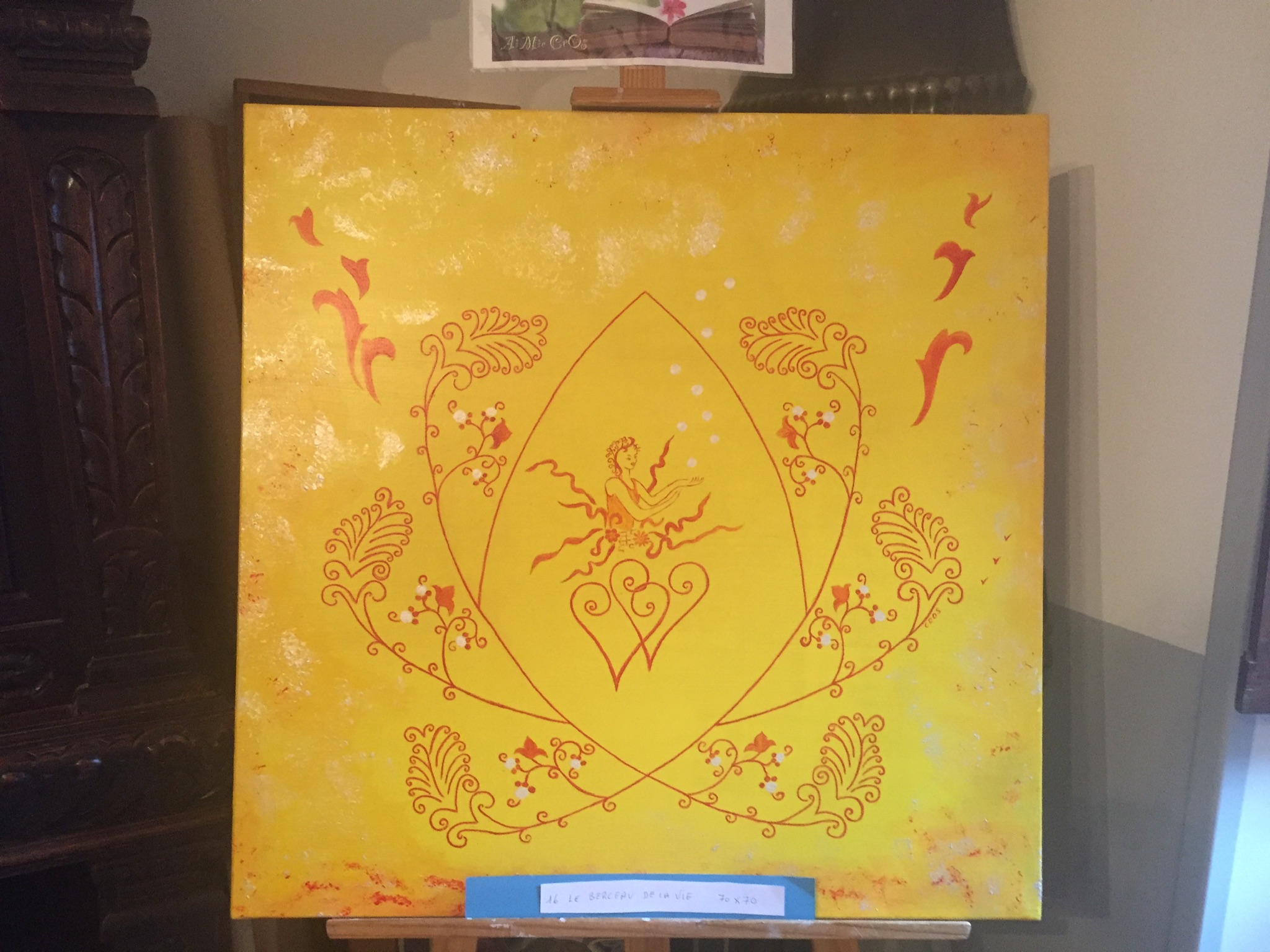 D’Univers en Univers , de dimensions en dimensions, chaque symbole posé sur mes toiles invite au rêve et à la joie .