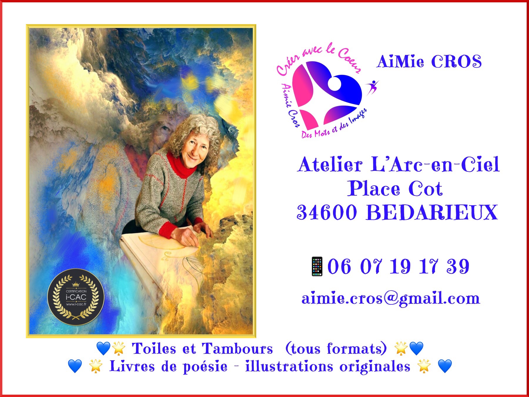 Artiste du Coeur , Artiste du Regard , Je m’exprime, depuis mon enfance,dans les domaines des Arts plastiques , de la Poésie , de la Musique et de la Danse …