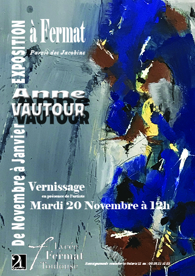 L’artiste sera présente Au Lycée Pierre de Fermat Parvis des Jacobins à Toulouse pour le vernissage le Mardi 20 Novembre à 12h