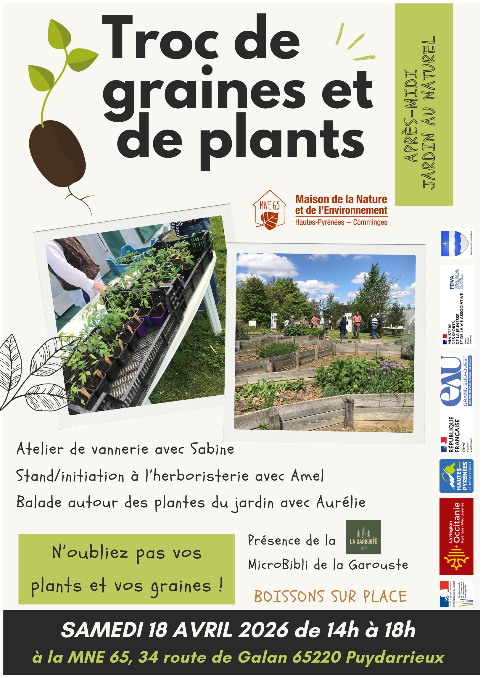 Infos pratiques : 👉 La Maison de la Nature et de l’Environnement 65 vous propose une après-midi jardin au naturel le Samedi 18 avril de 14h à 18h ! 🎯 Au programme toute l’après-midi en continu :