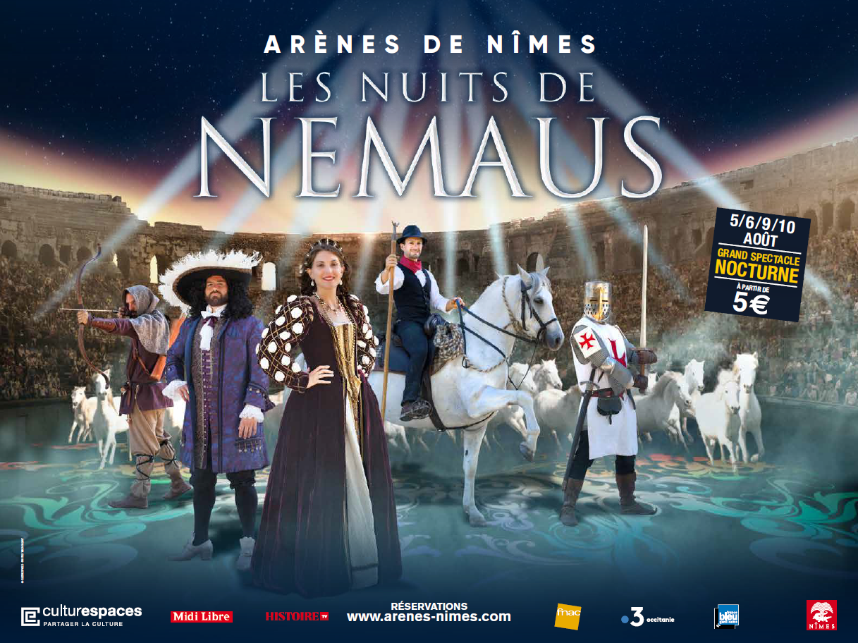 Pour 4 représentations, l’amphithéâtre romain parmi les mieux conservés au monde, se plonge dans une atmosphère poétique alliant projections d’images, ambiance sonore et lumineuse, mais aussi spectacle vivant et équestre. Cette nouveauté estivale mettant en scène plus de 200 comédiens, danseurs et cascadeurs professionnels, est l’occasion de redécouvrir le patrimoine historique et culturel de Nîmes. Les spectateurs pourront voyager dans le temps et profiter d’une représentation légendaire et immersive au cœur de l’histoire de la construction de la ville.