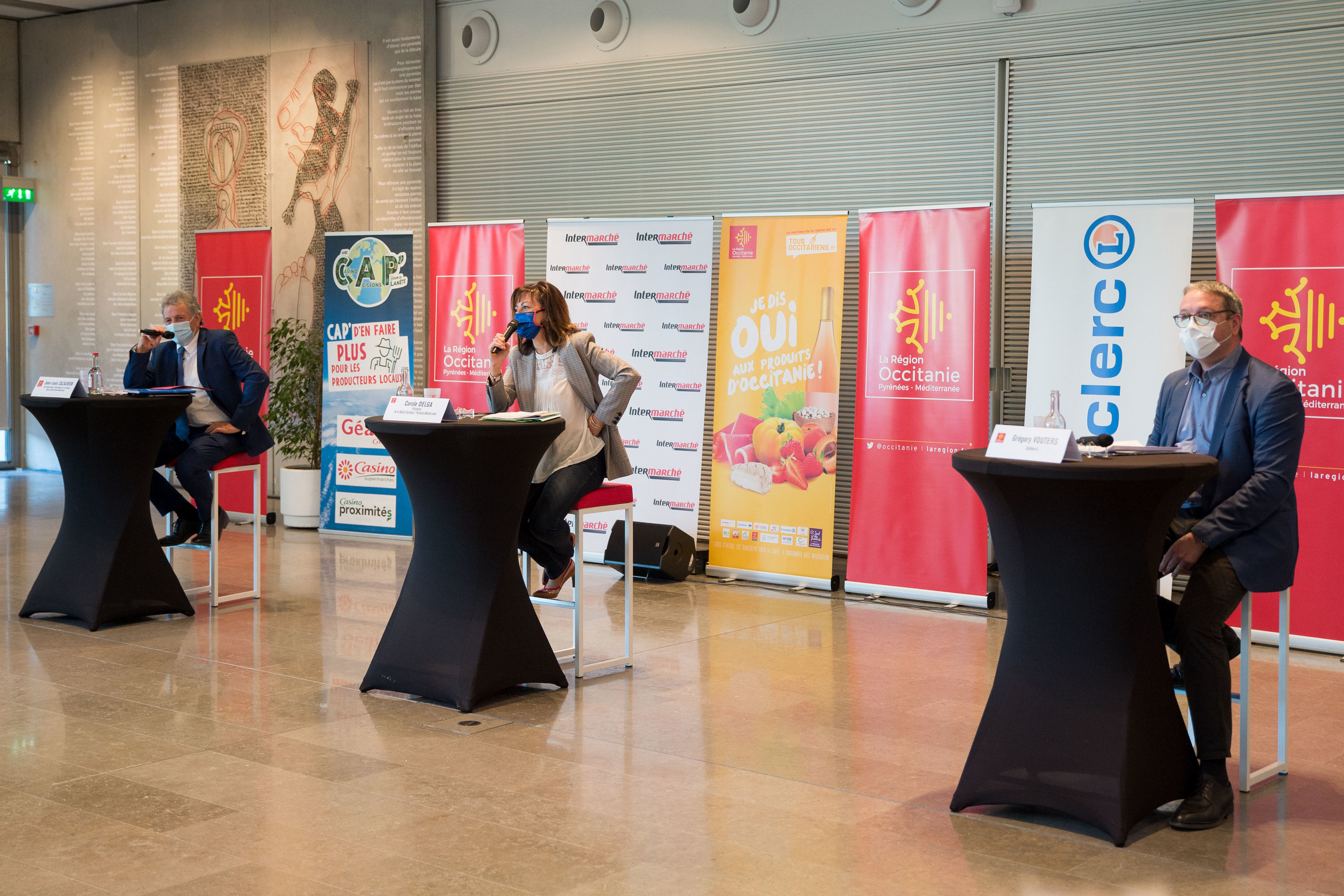 Carole Delga, présidente de la Région Occitanie, Jean-Louis Cazaubon, vice-président en charge de l’agroalimentaire et de la viticulture, ont présenté cette démarche collective en présence des représentants des enseignes (Auchan, Carrefour, Casino, Intermarché, Leclerc et Super U), et des partenaires (Chambre régionale d’Agriculture Occitanie, AREA, Coopération Agricole Occitanie, Centre technique Régional de la Consommation d’Occitanie, Interbio, l’Irqualim et Ad’Occ).