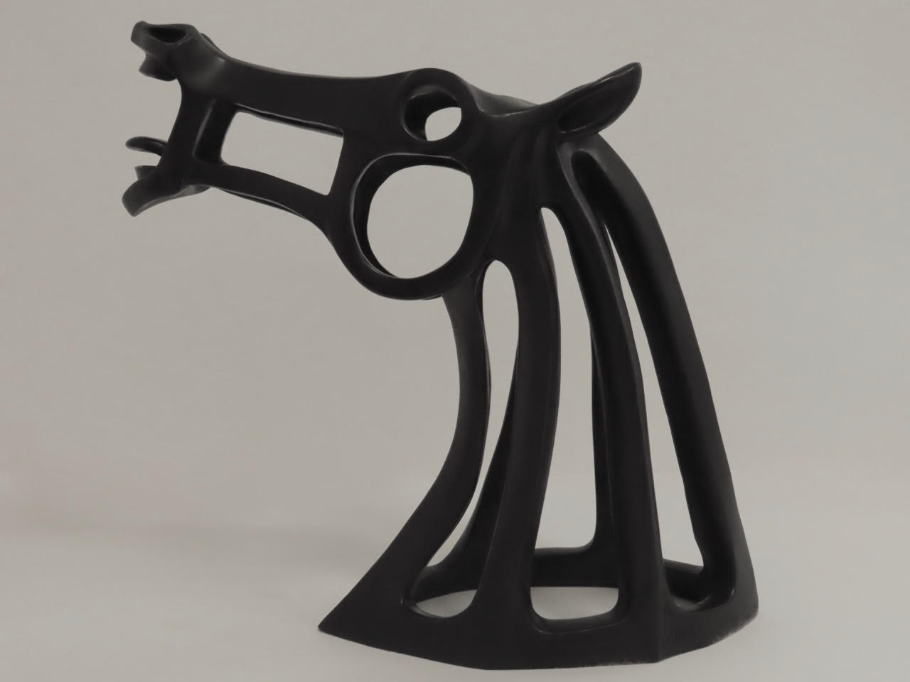 Plus orientée vers la sculpture animalière et figurative, j’explore sur des formes stylisées l’évocation du volume et du mouvement autour du vide. Les formes creusées, aussi travaillées à l’intérieur qu’à l’extérieur, comme suspendues, constituent des épures figées dans leur élan.