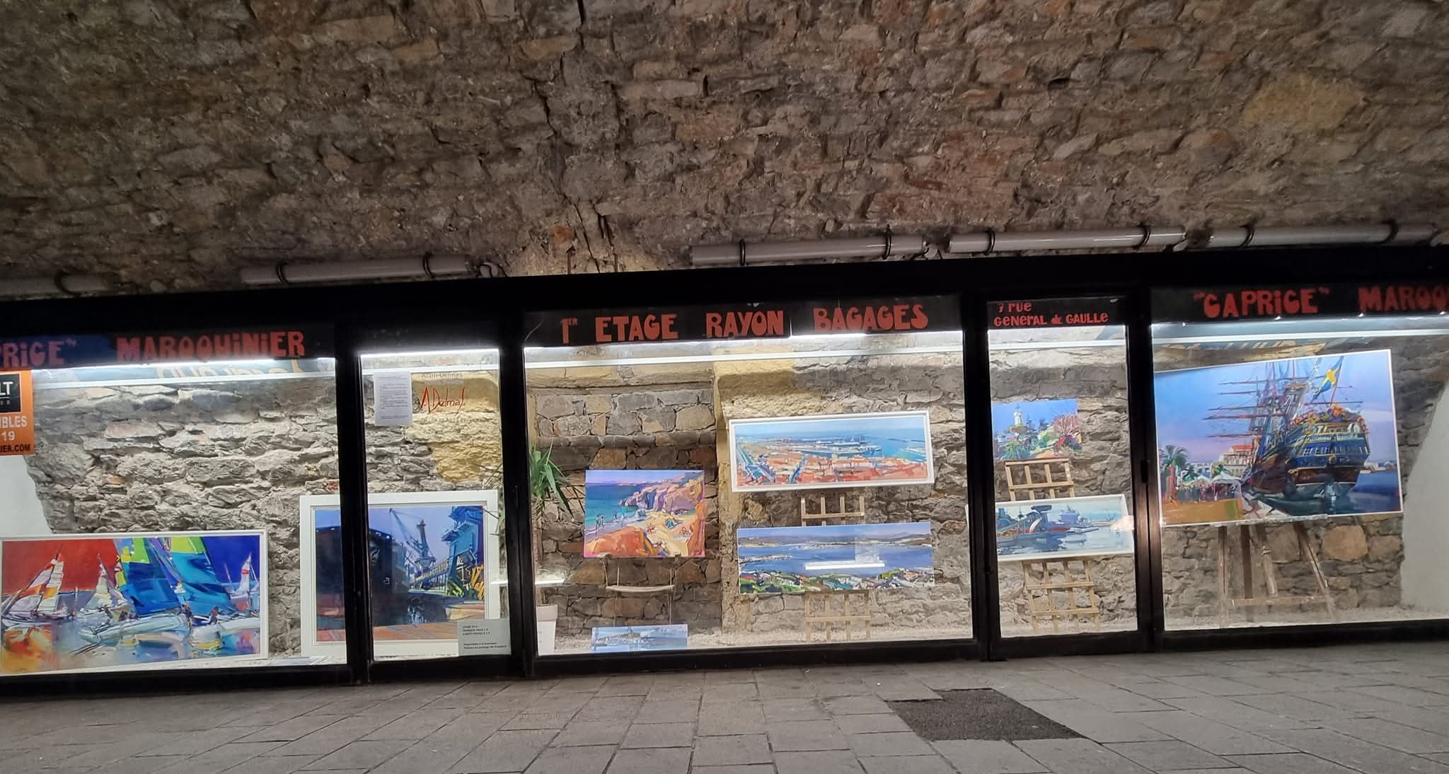 Exposition permanente dans une vitrine située dans une zone passagère à la galerie "Passage du dauphin".