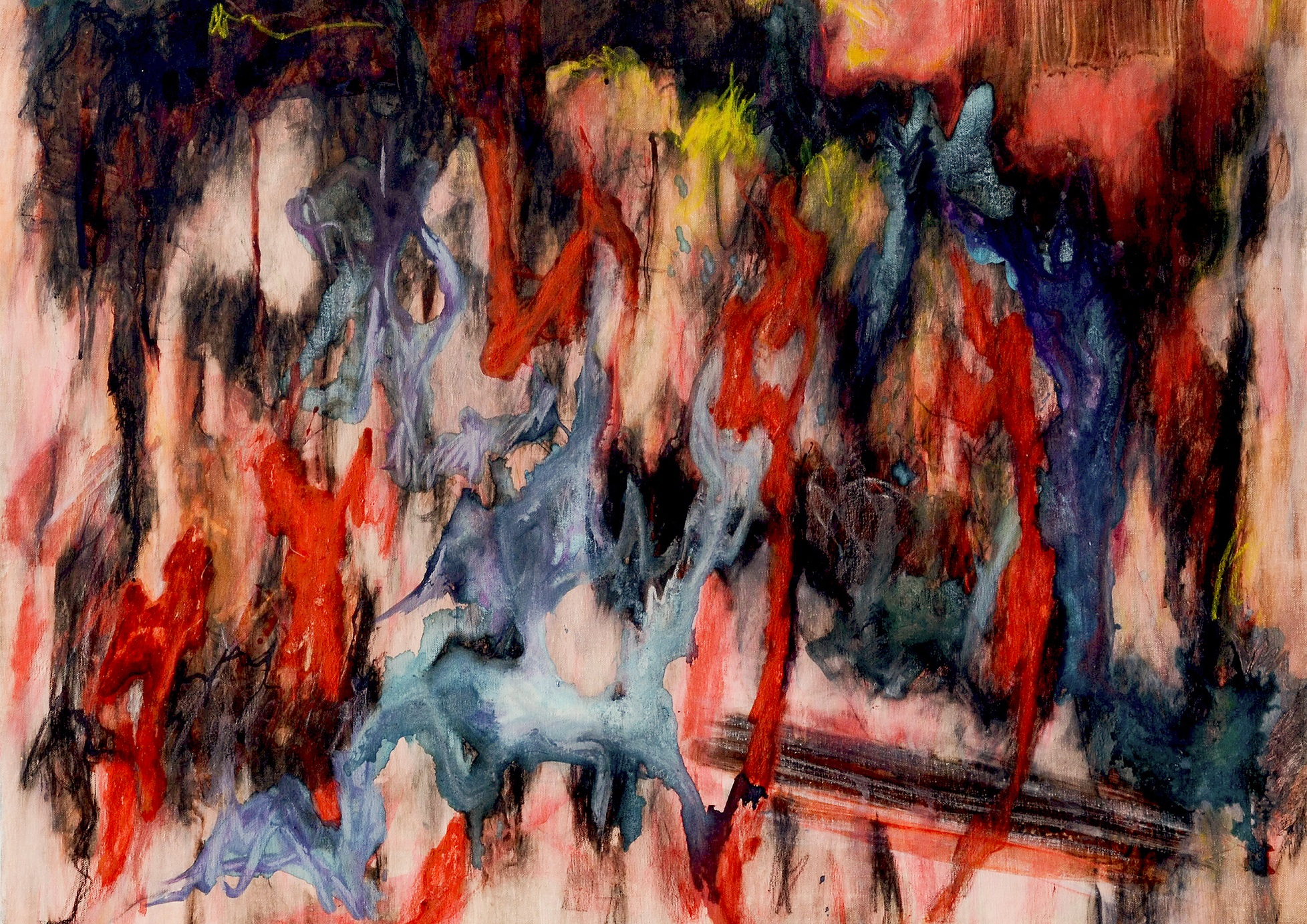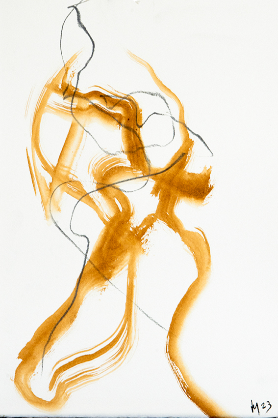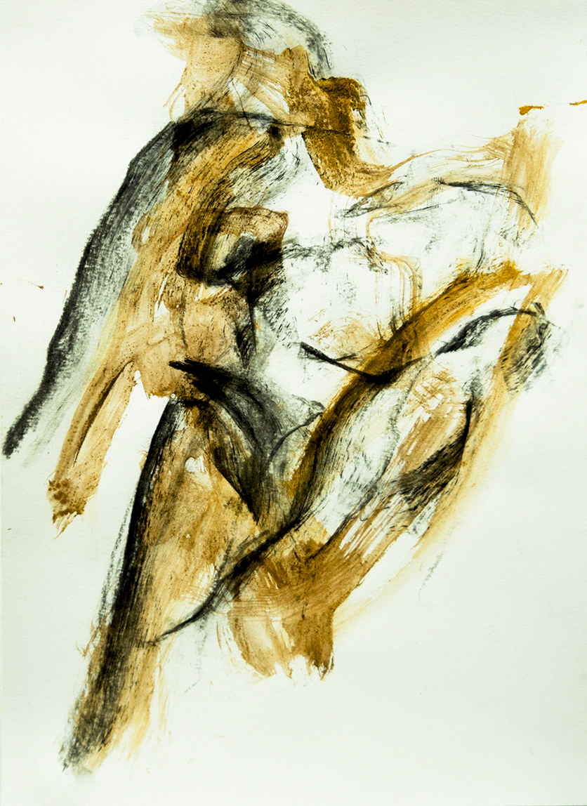 Sans le savoir, je travaillais dans une démarche intuitive ( dessin de modèle vivant sans regarder le modèle par ex) puis en sachant que la peinture sensualiste (expressionnisme lyrique ou abstrait comme repères généraux) était la façon dont je m’exprime. La peinture rétinienne exprimant mes sens, mon inconscient exclut toute intention de créer avec un objectif, un concept. De même le dessin et la céramique, le monotype.