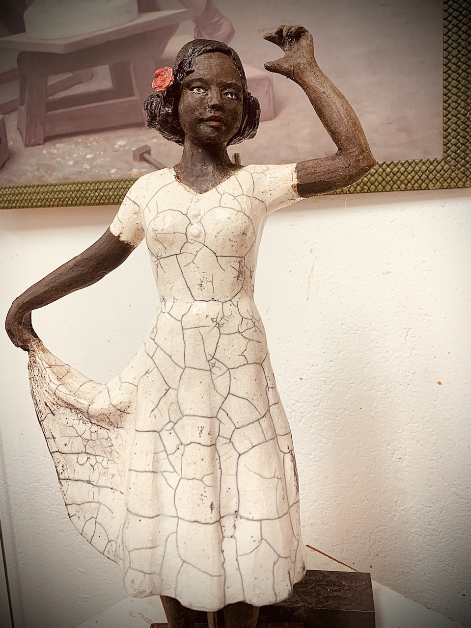 Très vite prise d’une passion pour la sculpture, j’étudie les différentes techniques liées à l’argile et les cuissons Raku. J’enrichi m’a formation au cours de nombreux voyages au Burkina Faso où je me forme à l’ancestrale technique du Bronze à la cire perdue.