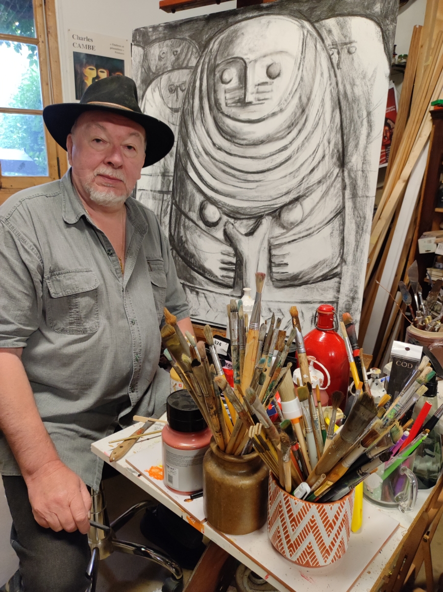 Charles CAMBE est un peintre figuratif , il mène des recherches plastiques et formelles pour synthétiser les préoccupations de l’humain. Son travail artistique est influencé par l’archéologie qu’il pratique également .