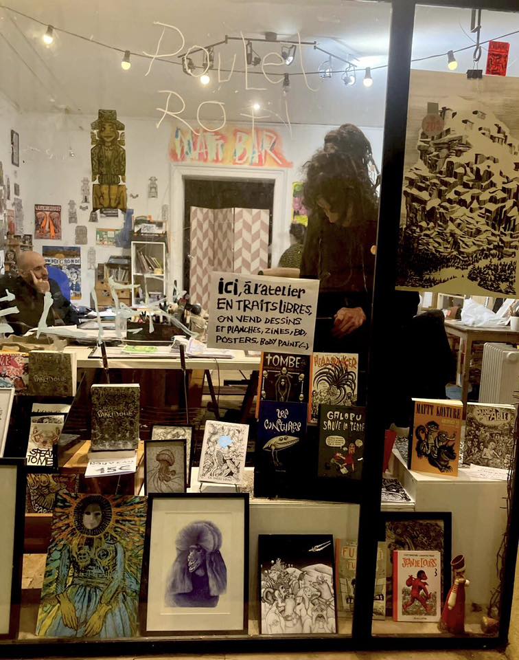 L’atelier En traits libres a été ouvert au printemps 2009, par Fred Dupuis, Mattt Konture, et quelques autres amies artistes et colocataires du lieu.