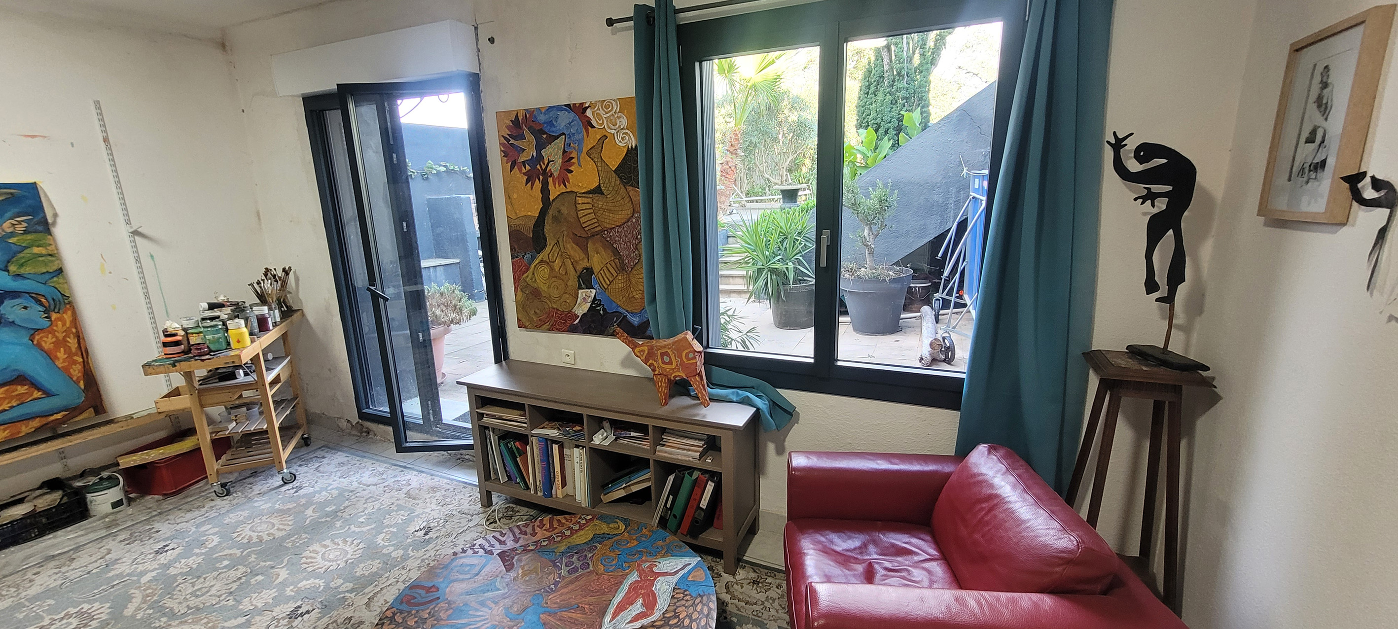 Mon atelier est situé au rez-de-chaussée de ma maison vigneronne à Marseillan ville au bord de l’étang de Thau. Il s’ouvre sur un jardin provençal fleuri et arboré. C’est un lieu propice à l’inspiration, au travail mais aussi au repos..