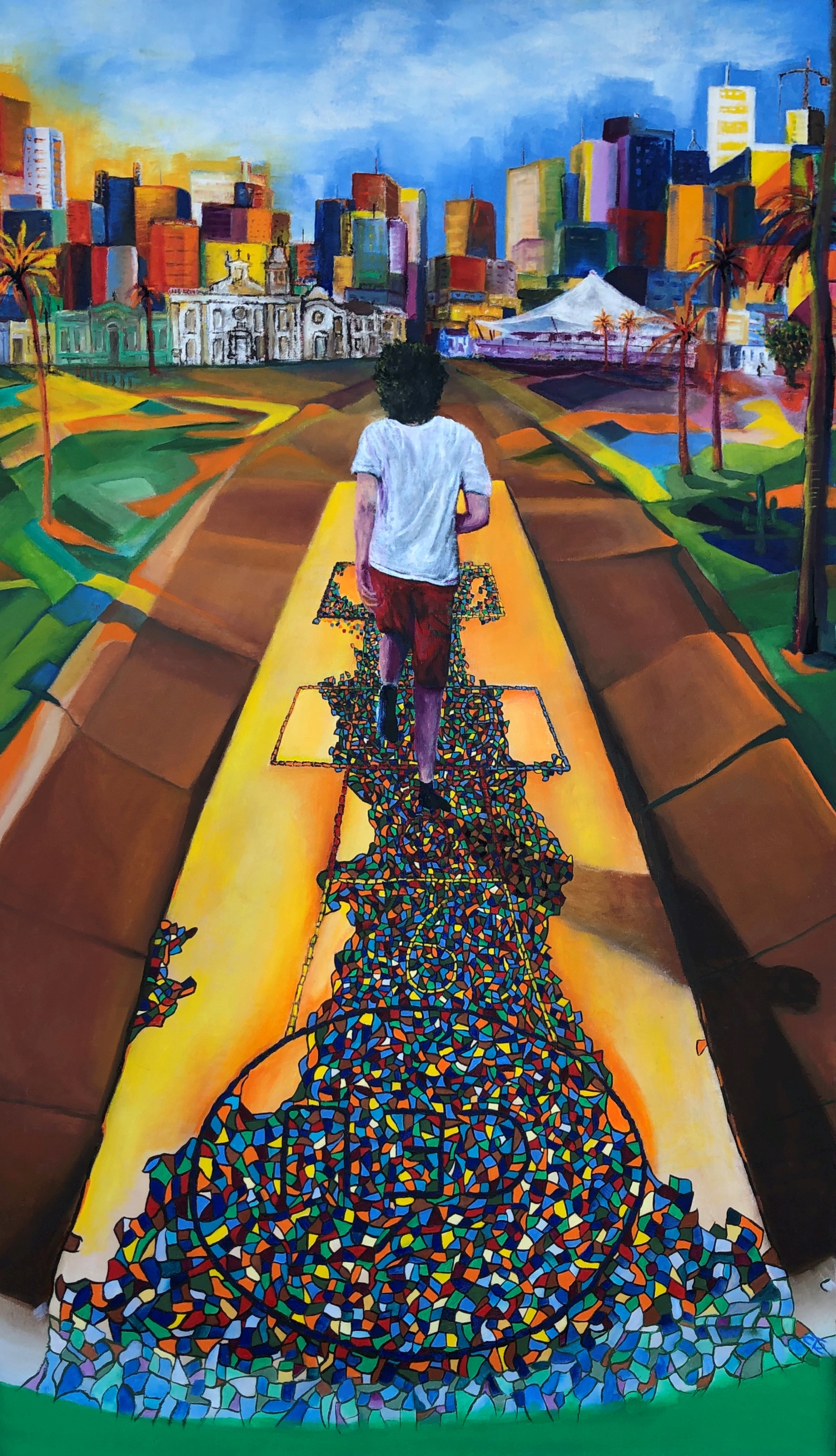 Né à Toulouse en 1961, je la quittais, j’adoptais pendant 25 années le Brésil puis je revenais en France fin 2020. À 18 ans, la pratique de la peinture en autodidacte exaltait deux années d’introspection intenses, j’étais appareillé de béquilles. Libéré, je parcourais le monde, naissaient des carnets de voyage. C’est depuis lors que je réalise des esquisses au crayon ou au fusain pour ensuite passer à une interprétation sur toile. Les thèmes s’attachent à des atmosphères souvent introspectives, cheminement de l’ombre vers la lumière, vision d’une relation au monde marquée à sa frontière par l’optimisme.
