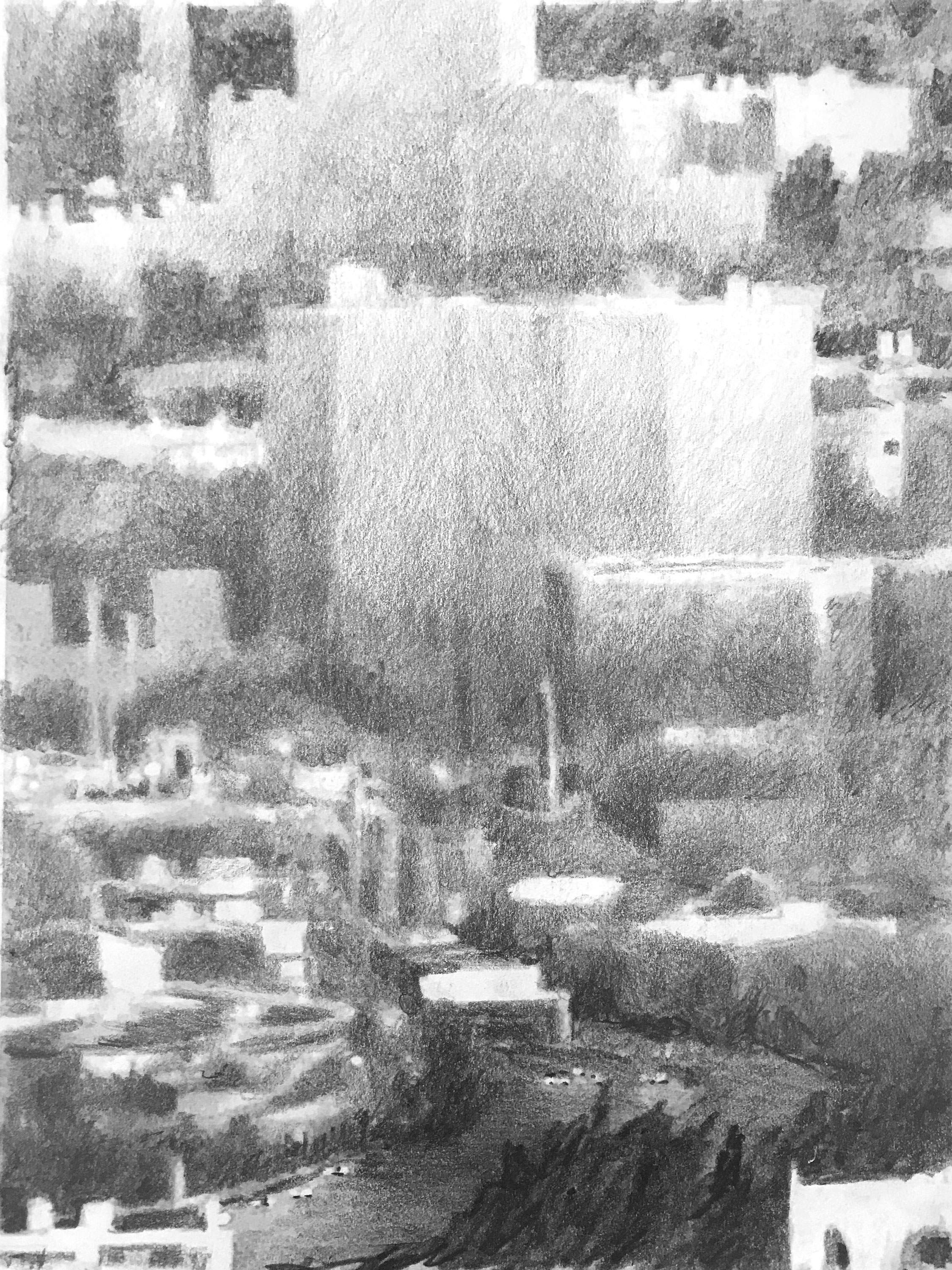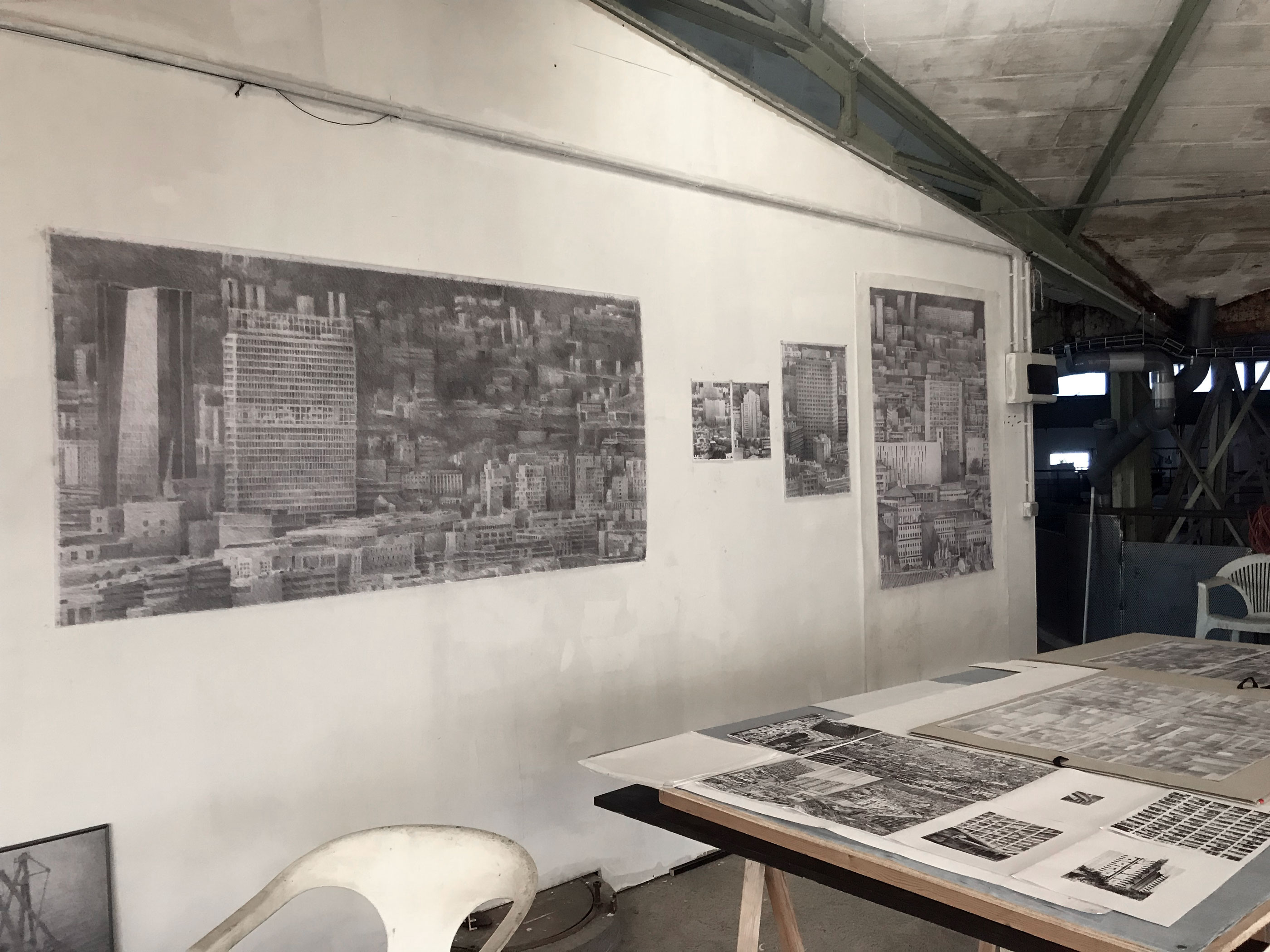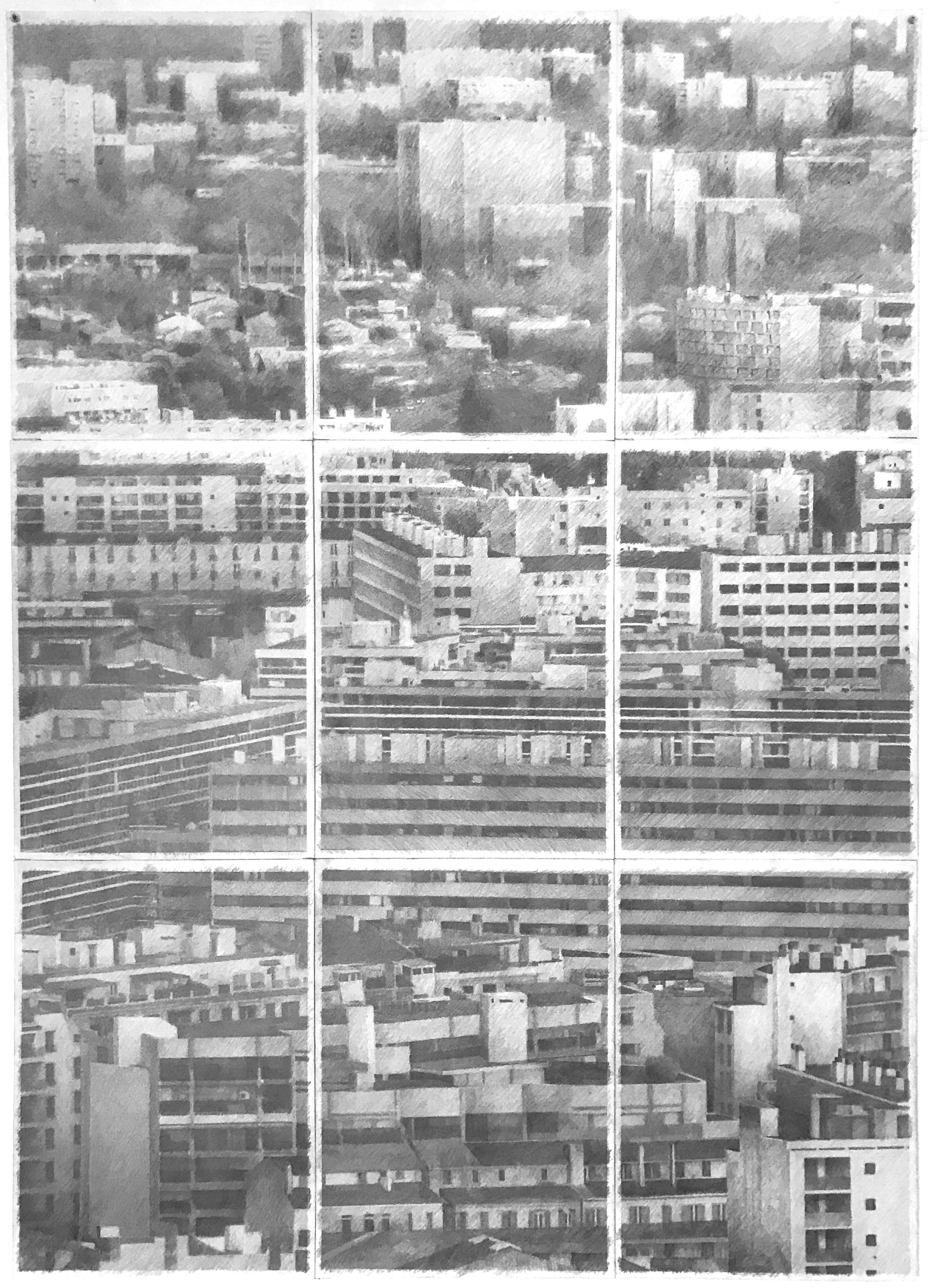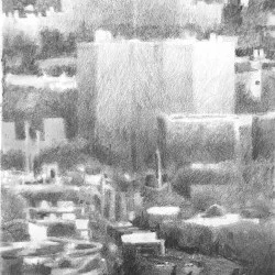 La pratique du dessin de Cédric Torne est liée au dessin d’architecture et ses outils qui façonnent le geste et exercent l’œil. Les relations entre volumes, échelles et surfaces y côtoient le vertige des vides, des zones blanches et des silences qu’éprouve le corps dans ses déplacements incessants, confronté à l’exigence d’une observation accrue, méthodique et obsessionnelle du réel. Les formes de bâtiments, de villes et de paysages se fixent alors sur la mémoire de la rétine comme les incisions des traits à l’encre noire qui transcrivent le monde en images tout en échappant aux schémas d’une représentation automatique. Car observer, comme remarque Paul Valéry, c’est, pour la grande part, imaginer ce que l’on s’attend à voir. Le dessin devient alors une opération complexe qui individualise la notion des savoirs et des connaissances comme celle de l’espace et du temps…