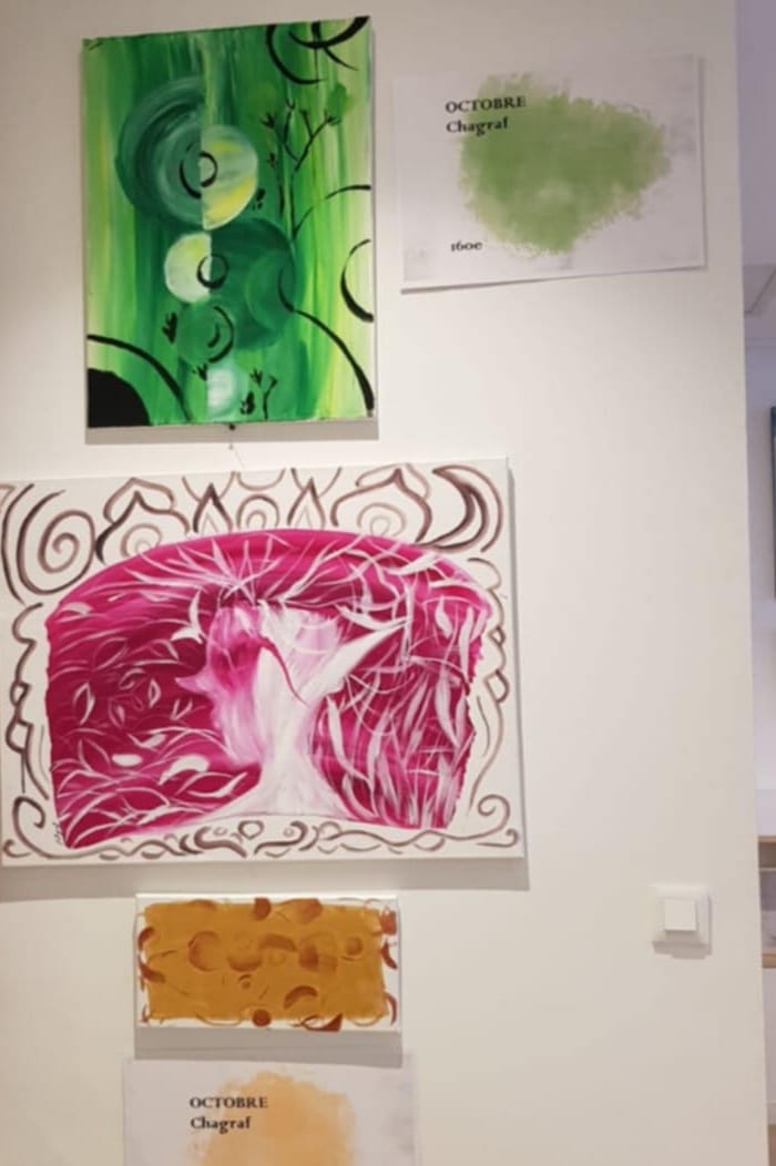 elle expose ses peintures et évolue en tant qu’animatrice d’art. Chagraf