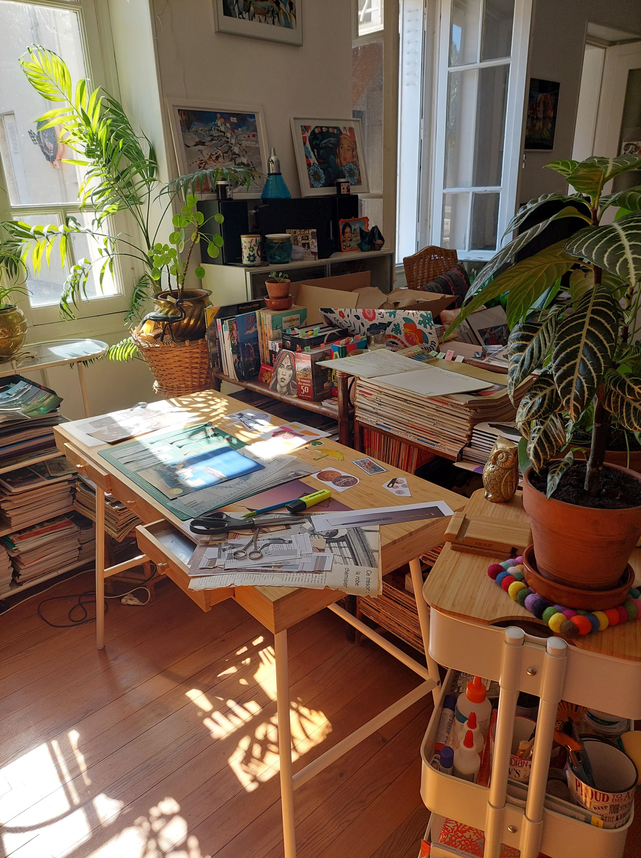 Dans mon atelier, véritable havre de paix au cœur des Minimes, je présente des collages uniques et originaux de formats divers, mais également des séries thématiques (Tour de France, Enfance, Signes du Zodiaque…).