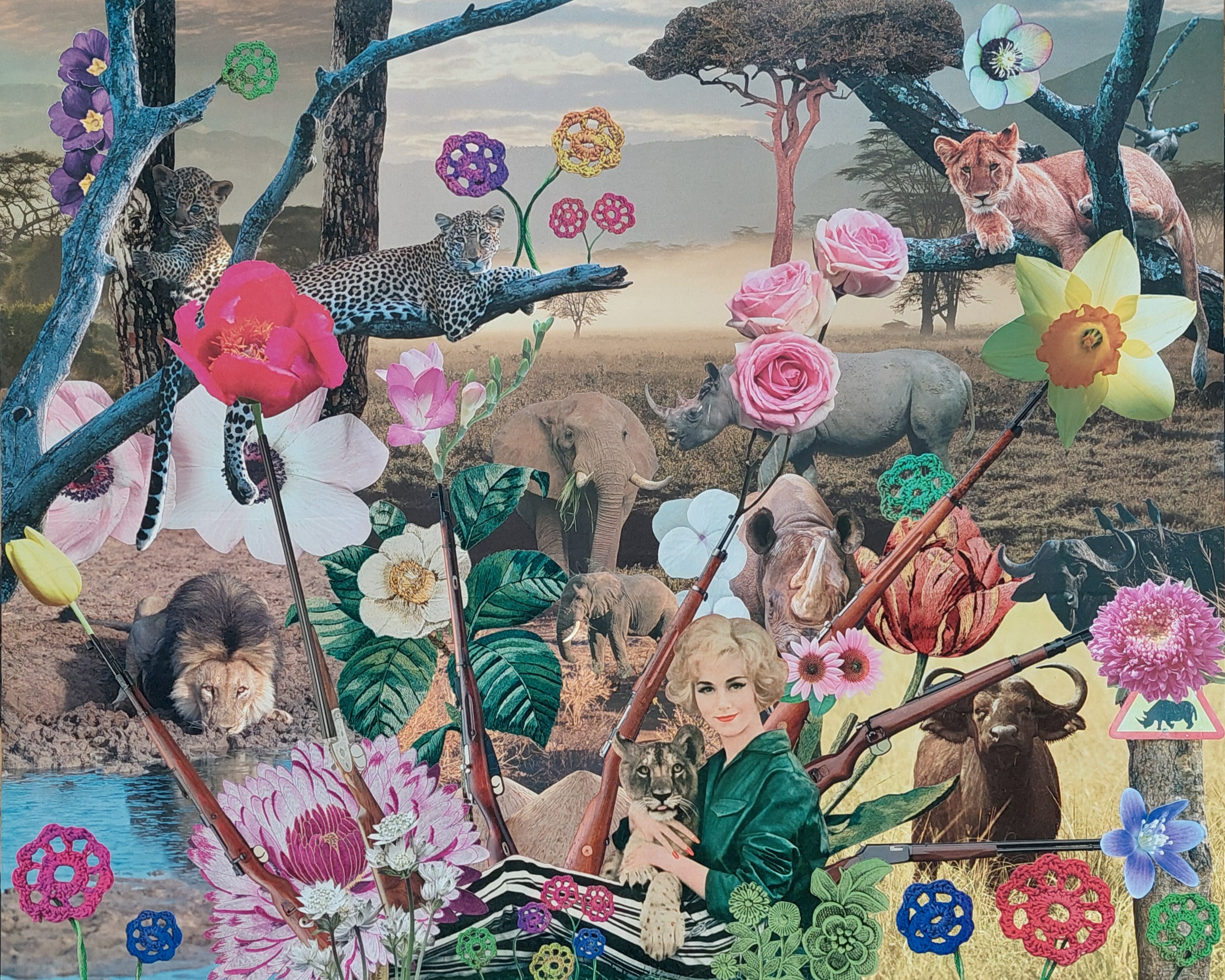Chacun de mes collages raconte une histoire. La femme y joue le premier rôle, avec humour et légèreté. Les animaux, la nature, les voyages s’invitent également dans mes œuvres avec, en filigrane, toujours, la liberté.