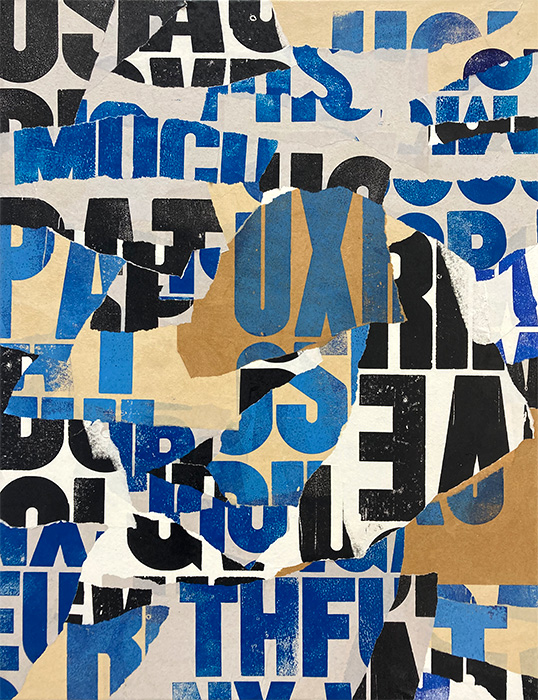 « Je m’intéresse à la matière ; celle pauvre des éléments du commun, celle qui acquiert une humanité de l’oubli et de la négligence. Je travaille alors comme un peintre qui n’utiliserait pas de peinture, un poète qui détruirait les mots. Je rythme mes toiles par déchirures pour créer une poésie graphique, brute, subtile. »