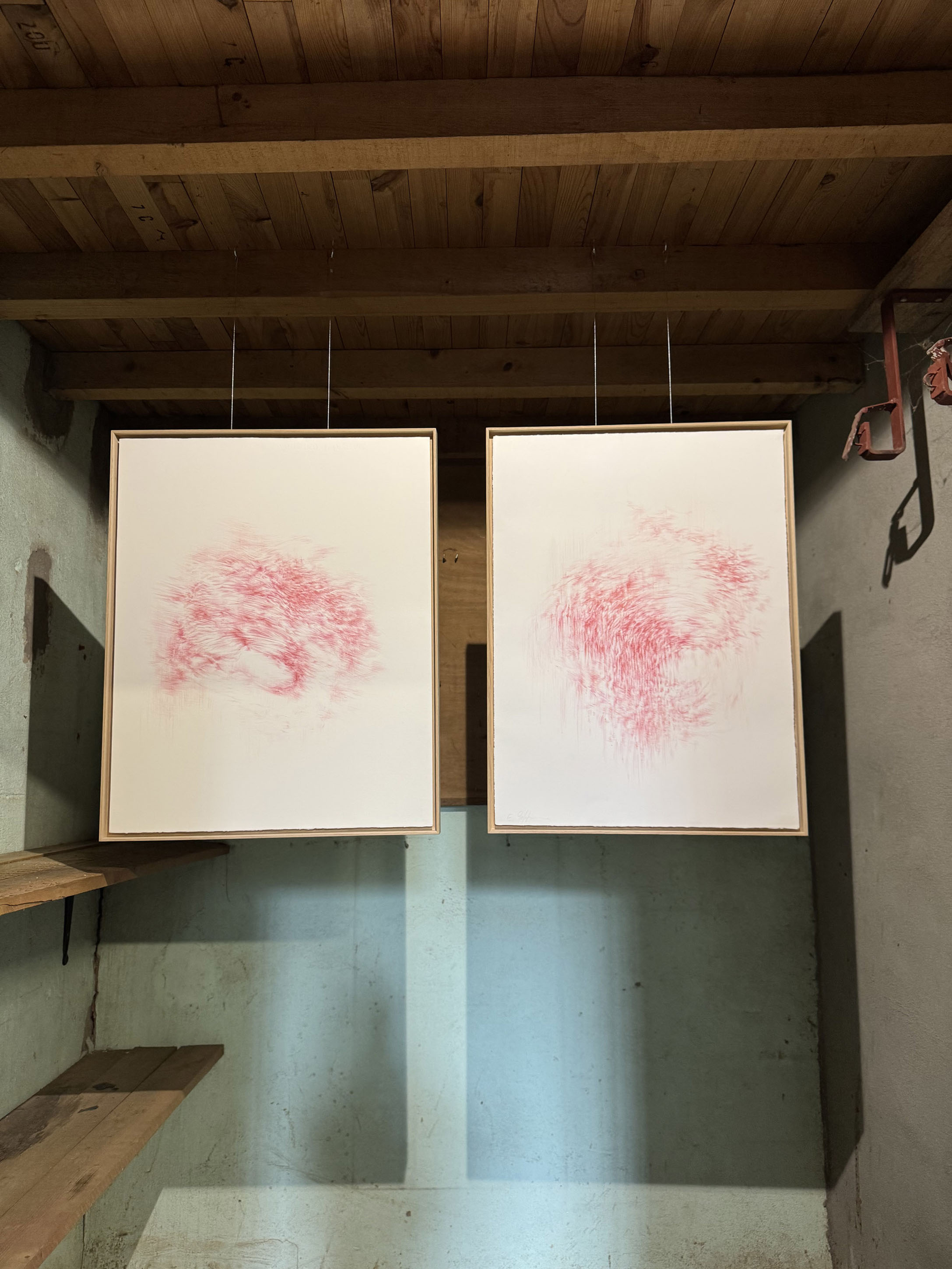 C’est au crayon de couleur ou au stylo, que je campe ces espaces (topographies informelles, faites de souffle, de flou) portés par l’homophonie d’un trouble qui guide mon regard.
