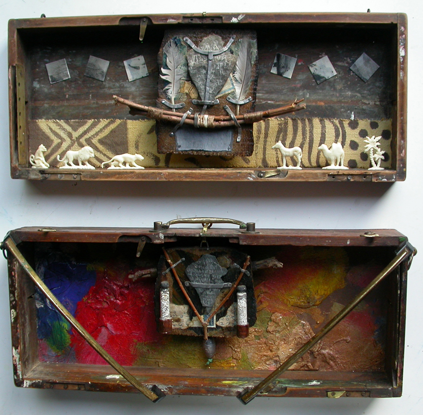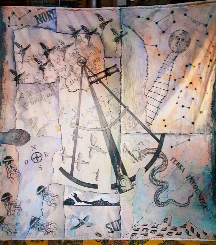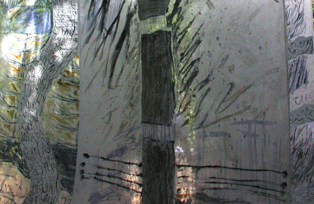 Pour Marianne Frossard tout fait matériau, matière et support se mélangent, échangent leur fonction, accueillent les rencontres fortuites ou recherchées : papiers en tous genres, de soie ou de journal, textiles divers, raffinés ou malmenés par le temps, plumes, coquillages, miroirs brisés, morceaux de rien, fragments végétaux, « les abandonnés » de la nature, feuilles, simples ficelles, fibres de lin, de chanvre de raphia, branches, bois flottés… L’artiste s’en empare, se les approprie, les travaille, se laisse travailler par eux, colle, maroufle, gratte, applique peinture, pastels, encres, fait surgir la couleur et la lumière. De toute évidence cette artiste est peintre, mais on l’aura compris pas seulement. Le cadre et les catégories explosent. Elle navigue d’un domaine à l’autre, de la couleur au noir et blanc, du volume à la surface plane, du grand format, voire très grand format au minuscule. Les appartenances se multiplient. L’histoire de l’art est bousculée et nous promène dans un univers aux repères flottants et à recomposer.