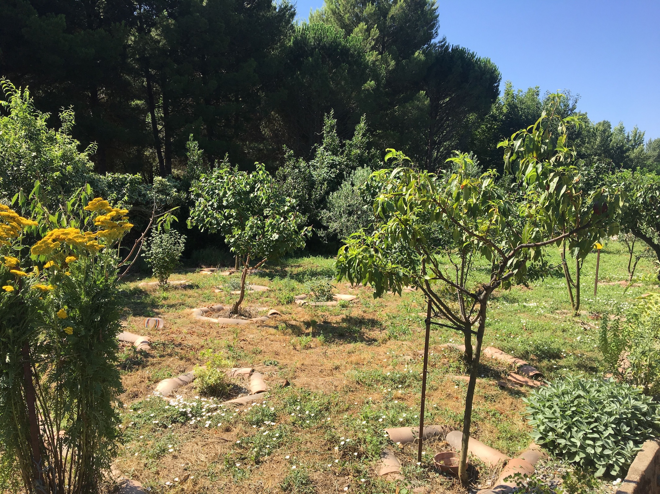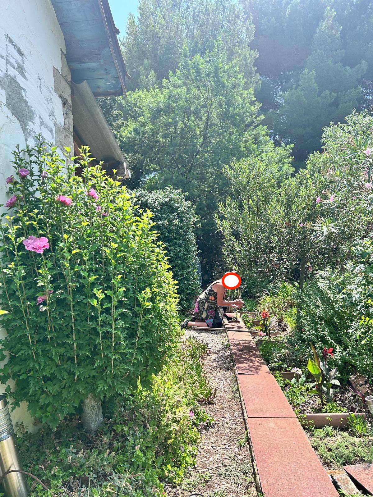 Adresse : traverser le vieux pont de l’argent double Rieux Minervois. A la sortie du pont face à la petite chapelle tourner à gauche et longer la rivière l’argent double . Le premier jardin avec un portail vert peinturluré de blanc situé après un espace pour les chevaux.