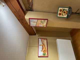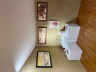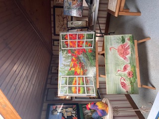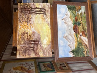 L’atelier se situe à l’étage de ma maison , c’est un peu grand , il y’a de quoi s’assoir , mon espace ou je fais mes créations et les tableaux sont dans mon atelier. Les tableaux en céramique sont tous cuit à 1000 degrès.