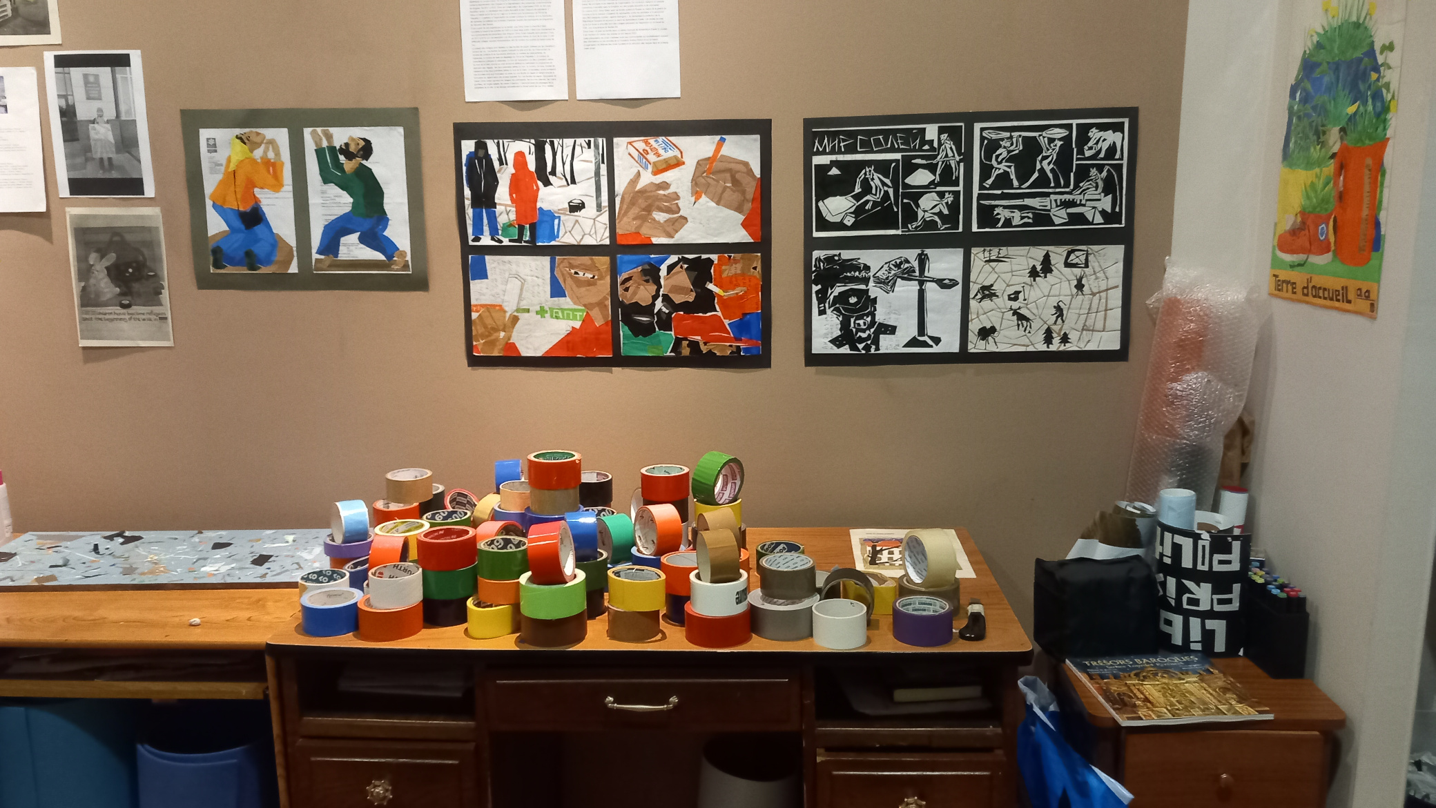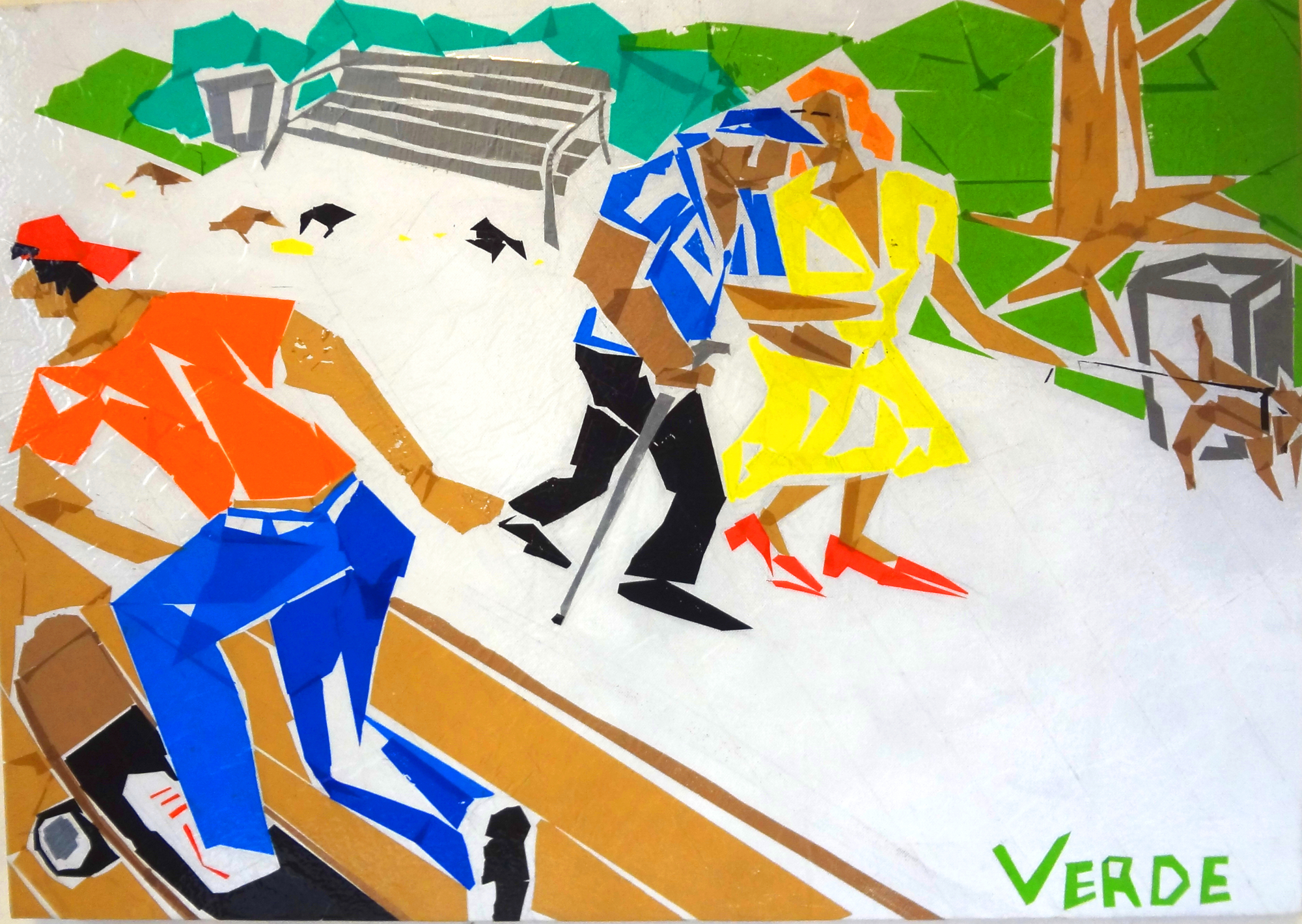 Né en 1976 à Moscou en Russie, Dima Green est artiste et activiste. De 2001 à 2012, il est membre du collectif artistique Tsvetafor, puis intègre en 2011 l’équipe du festival d’art activiste MediaUdar à Moscou. À partir de 2017, il travaille à Moscou pour la Fondation Andrey Rylkov (FAR), ONG œuvrant pour la réduction des risques liés à la consommation de drogues. Il quitte la Russie après l’invasion de l’Ukraine et obtient l’asile politique en France. Il participe à des expositions et est membre de l’atelier des artistes en exil. Il pratique le tape art (collage de rubans adhésifs) et mène des projets artistiques collaboratifs à visée sociale. Il s’intéresse aussi bien à la question des réfugiés, à la guerre en Ukraine, aux personnes sans abri, qu’aux territoires qu’il traverse.
