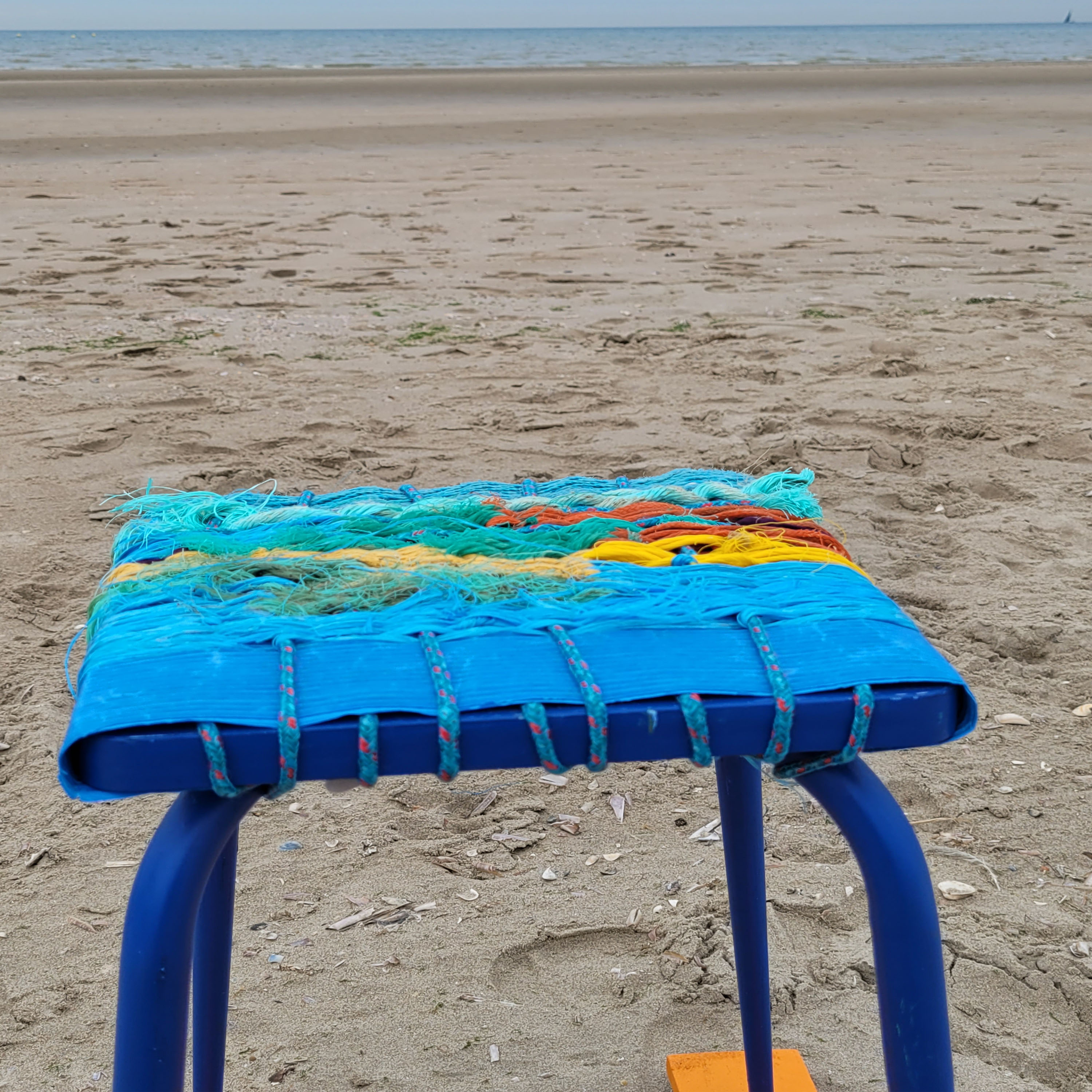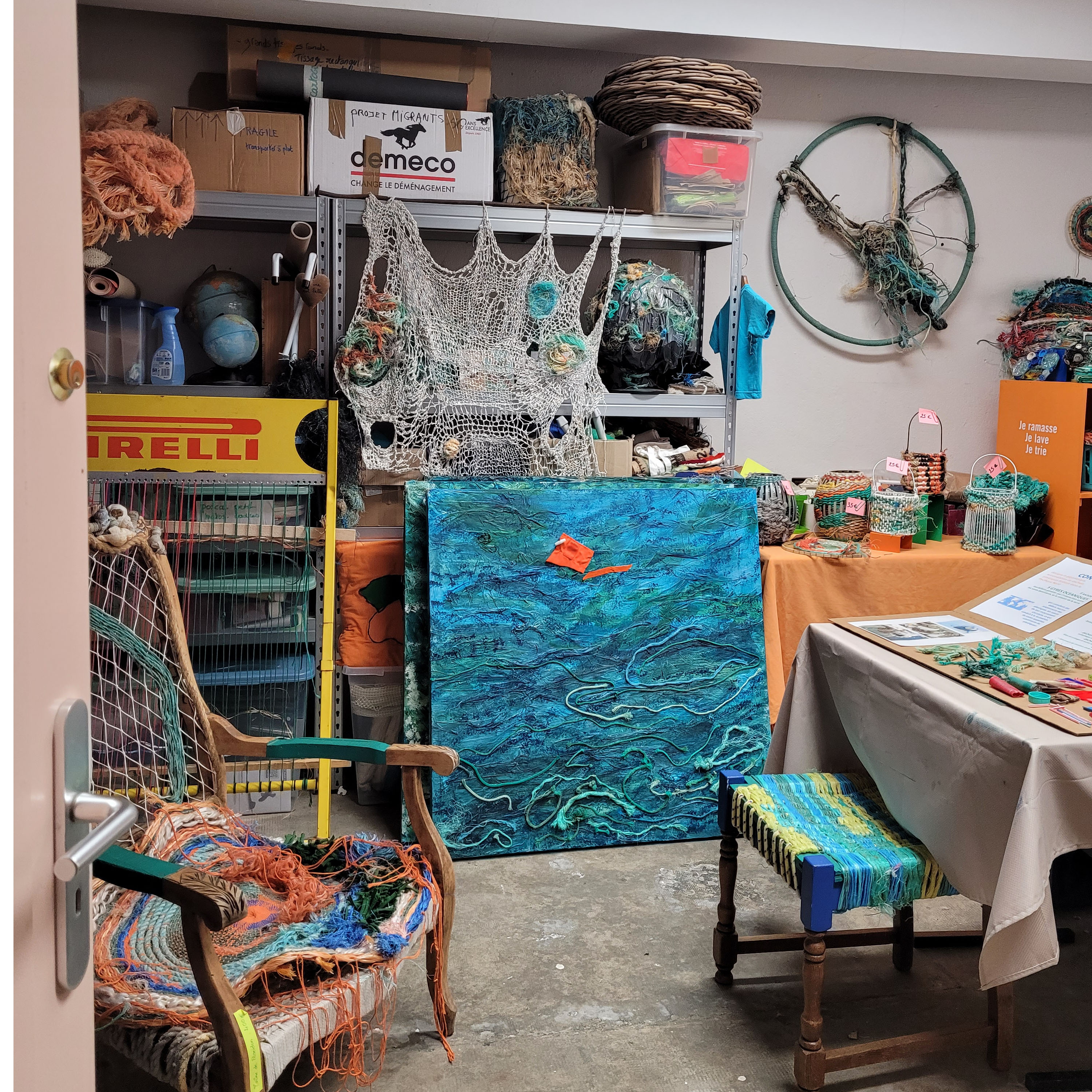 L’atelier vivant et coloré évoque donc les bords de mer. Mobilier upcyclé, déchethèque, tissages colorés, un univers à découvrir .