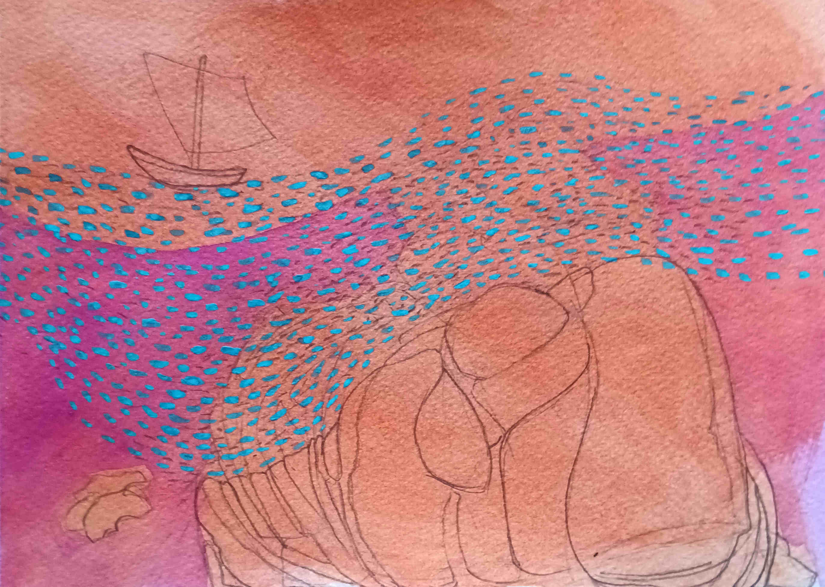 Après des années de pratique à l’encre et à la plume, sans repenti ni retouche, mes outils de prédilection sont maintenant l’aquarelle et le crayon, la faïence et le grès émaillé.