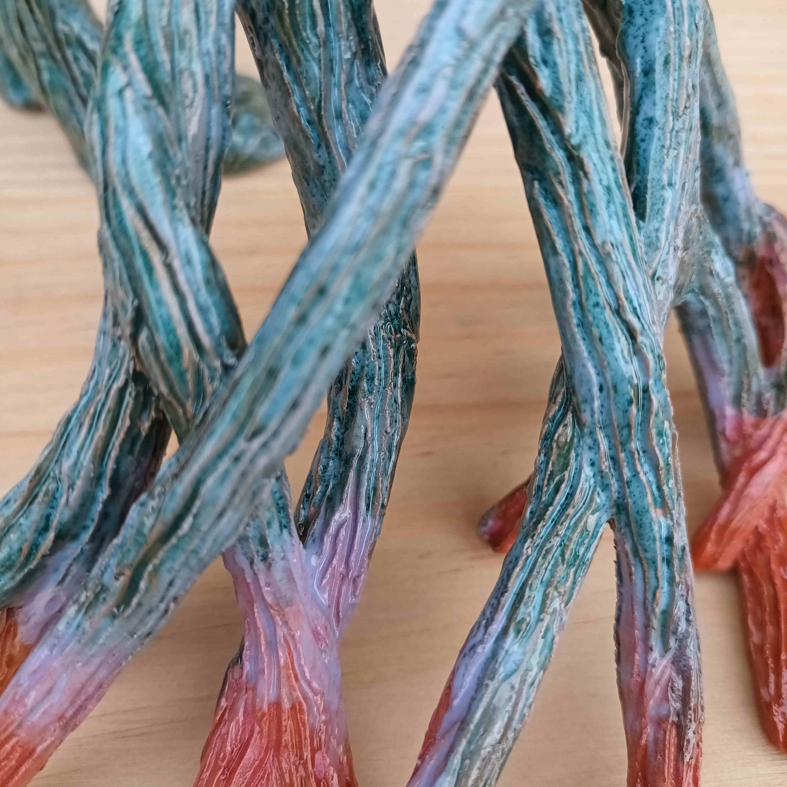 Je réalise des variations autour du motif : coeurs, racines, coraux, mer, montagne.