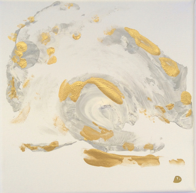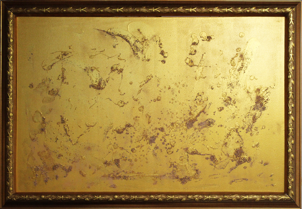 Plasticienne, elle travaille une passion pour la matière précieuse en métal inaltérable : l’Or. Ses créations – formes abstraites en mouvement, issues de la matière-couleur merveilleuse sont des œuvres d’une richesse symbolique épurée.