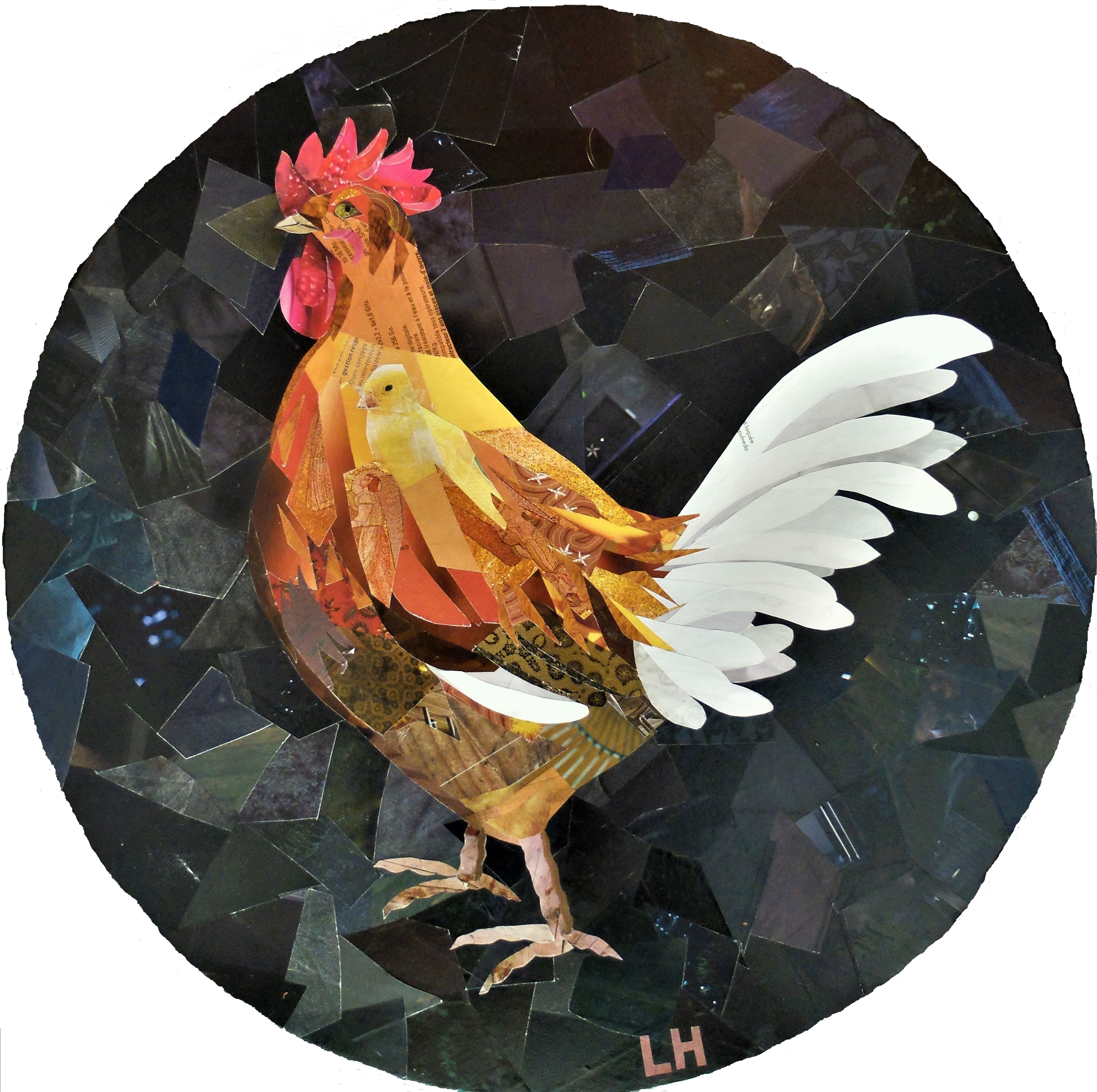 J’aime me qualifier d’écollagiste. Mes collages sont réalisés exclusivement à partir de prospectus, magazines, catalogues, etc. J’aime détourner le matériel usuel, vulgaire pour le transformer en quelque chose d’artistique, une volonté sous-jacente de transcender le réel, et d’intégrer différents univers, mon quotidien et un univers plus intérieur, plus sensible. Cela donne à voir une composition qui ressemble à une peinture au 1er coup d’œil et dans un second temps des images, signes, logos et petits clins d’œil apparaissent.
