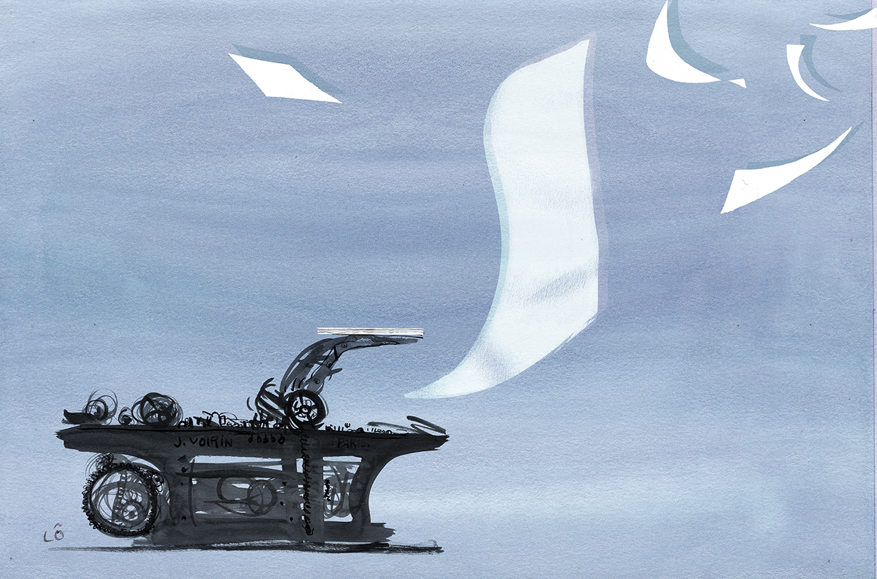 Je m’inspire de l’univers de Claire Brétécher, Felix Vallotton, Tomi Ungerer, Quentin Blake, Saul Steinberg, Ronald Searl …