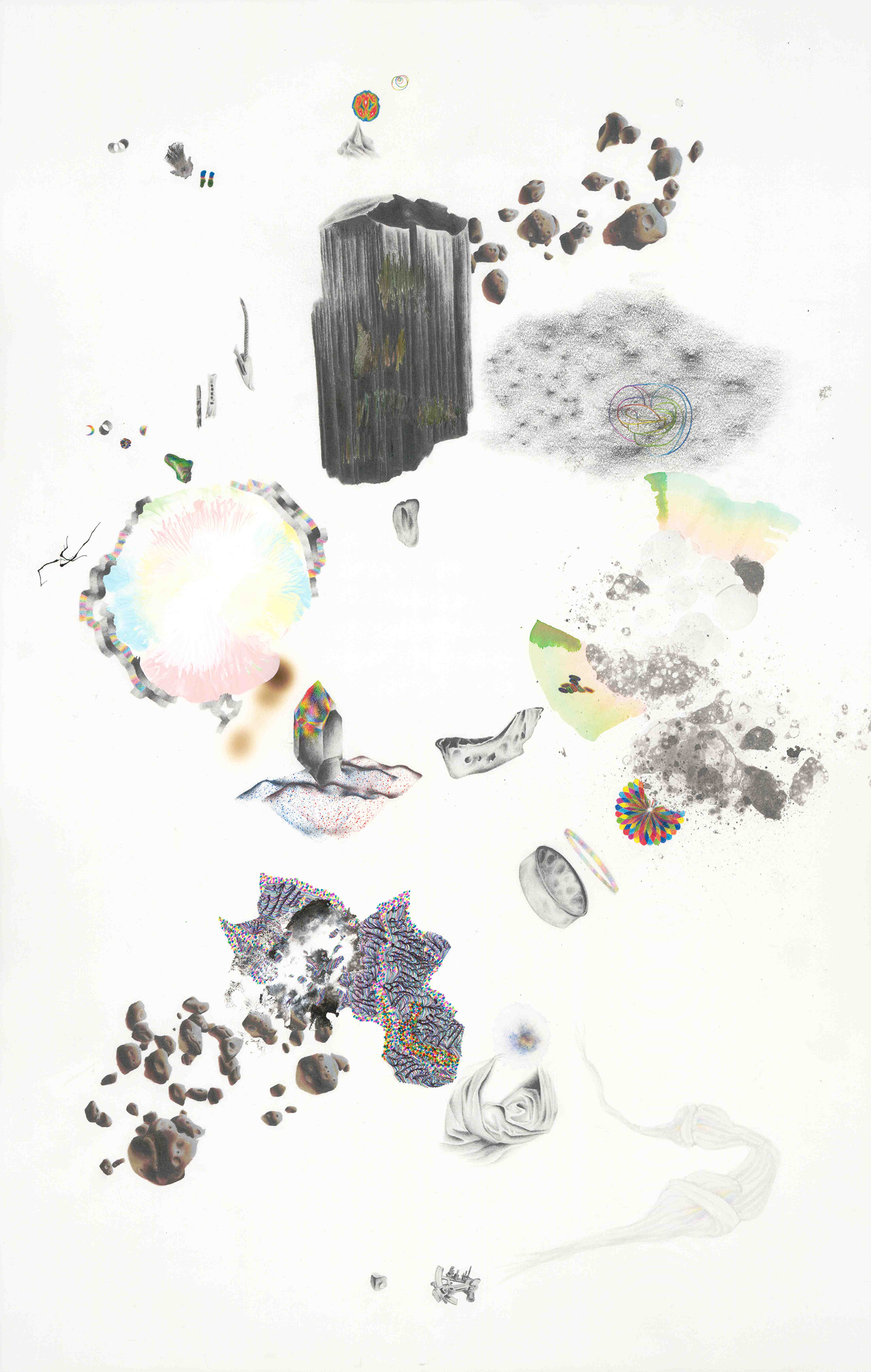 Sa pratique artistique est composée de dessins et de sculptures. Son but est d’explorer les différents états de la matière et d’offrir une expérience immersive en faisant appel à nos capacités d’observation, de mémoire et de projection. Au regard du flux important d’informations qui nous entoure, son propos rend compte des infinis détails du divers, libres de s’associer par leurs similarités et de se comparer dans leurs différences. Par juxtaposition, un lien d’identité se dessine. Traversé par des domaines de connaissances divers, son travail cherche l’équilibre entre des exercices de discipline et de relâchement.