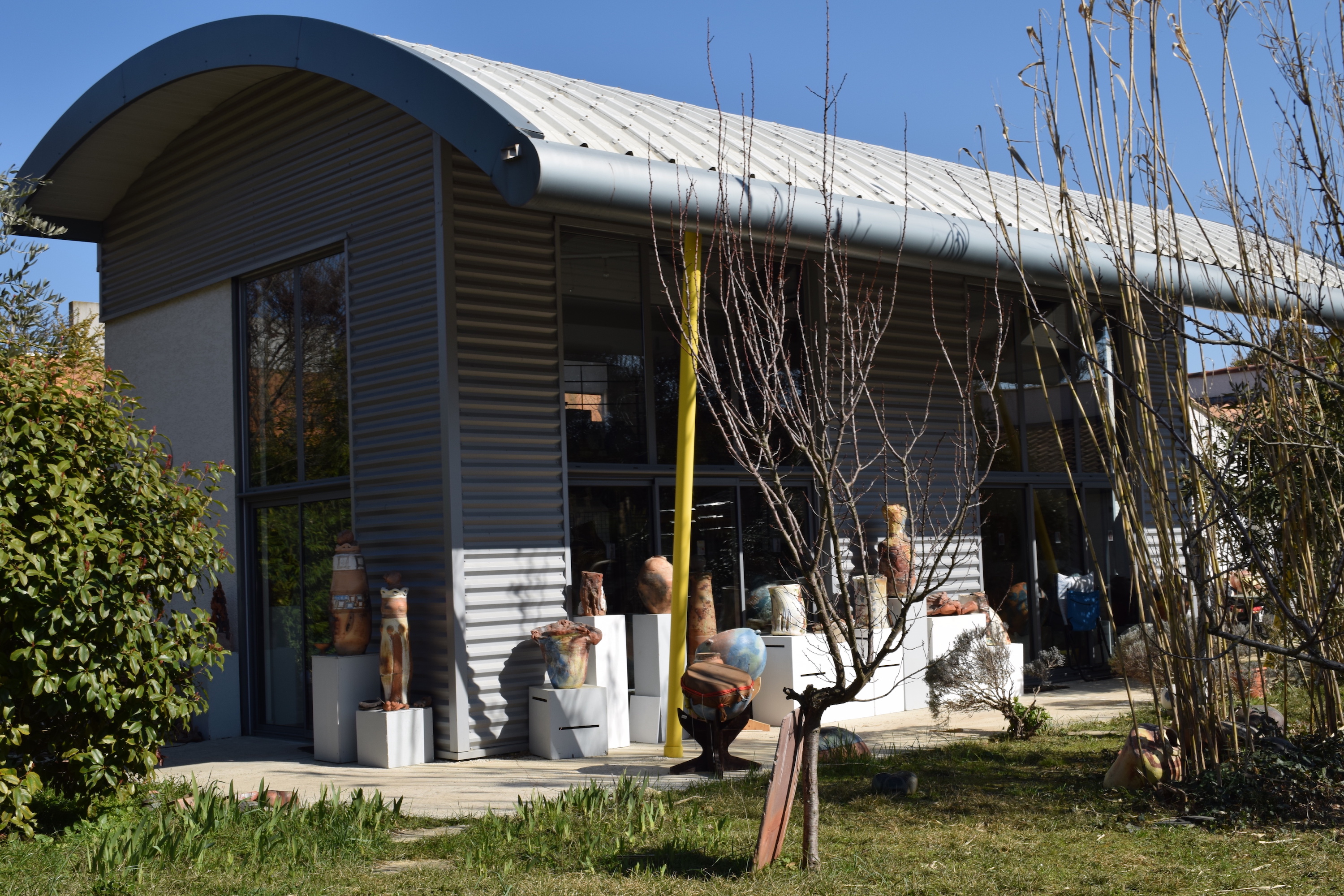 L’atelier est sur un terrain arboré de 2000 m2. Il se compose de 2 galeries, un jardin- expo et d’un atelier