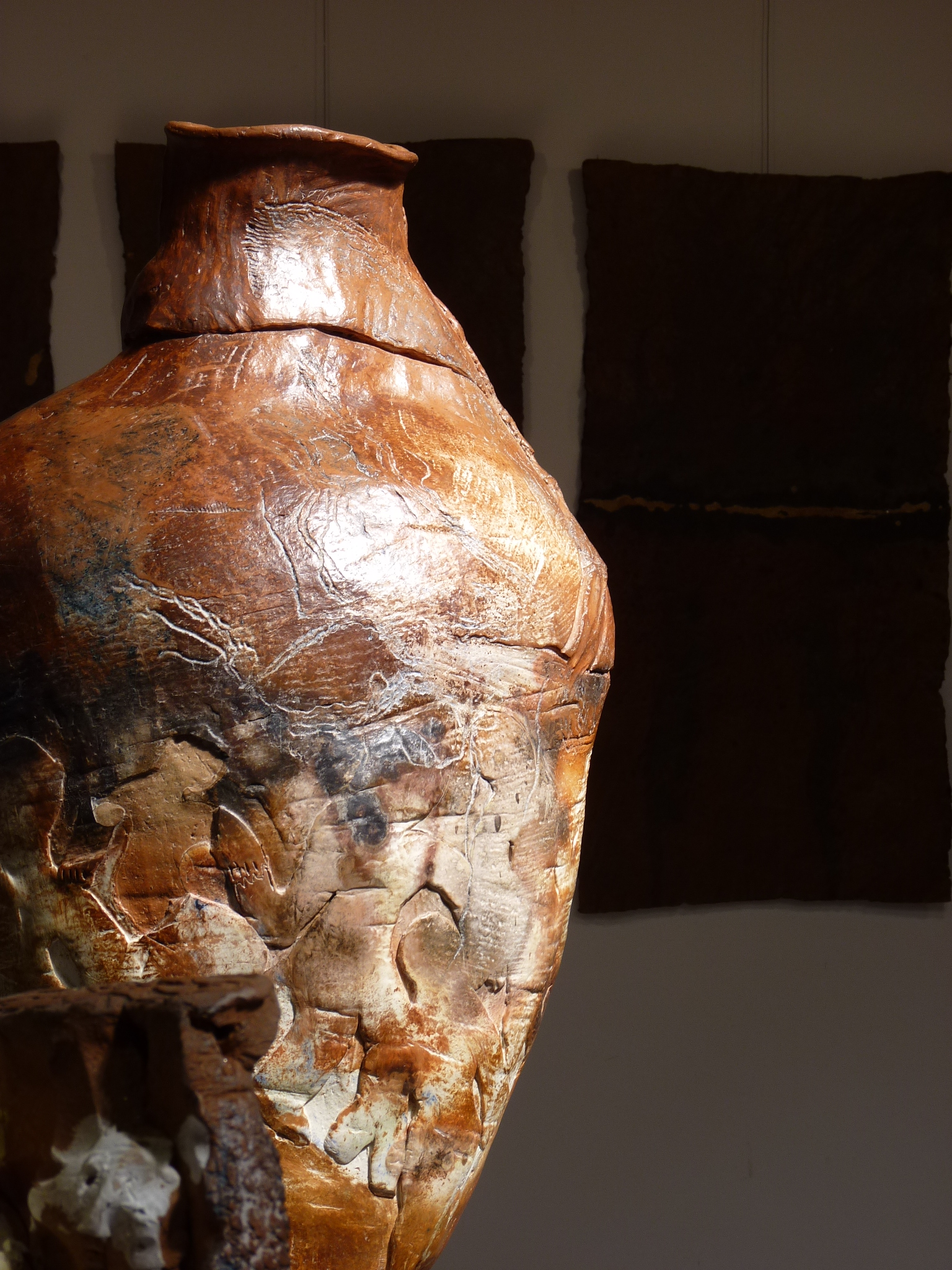 Réalisation de pièces uniques en terres cuites engobées et polies pour exposition en galerie.