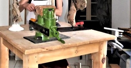 Il est equipé de matériel de sculpture sur bois (gouges, ciseaux à bois …) et d’un établi sur lequel je sculpte le bois.