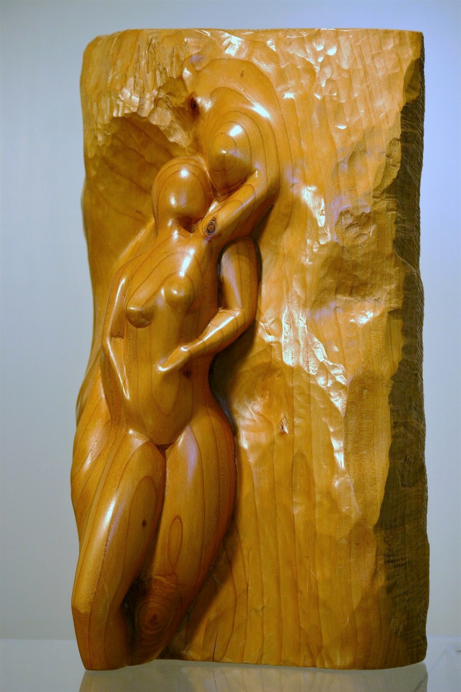 Je réalise des sculptures en taille directe dans différentes essences de bois : tilleul merisier , cèdre, olivier … Je taille, je ponce, je cire … Un travail long et difficile où aucun repentir n’est permis.