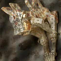 Après des études placées sous le signe de la littérature et des langues étrangères, puis des activités liées au monde du spectacle, Michel Brassac goûte aux plaisirs de la création. A travers l’association Act’2, de son organisation du festival « Des croches et la Lune », il entre en contact avec la matière Papier Mâché. Au départ il travaille sur la base classique du grillage pour, petit à petit, se laisser emporter par la vague du recyclage, composant ainsi le squelette de l’œuvre à partir d’assemblage de déchets volumineux. Ses premières gargouilles voient le jour en 2009. En 2012 l’exposition « l’éloquence des gargouilles » à l’abbaye de Beaulieu en Rouergue marque un tournant dans sa création. Les personnages de Michel Brassac sont librement inspirés des gargouilles qui peuplent les édifices des siècles passés. Ses créatures portent tantôt la marque de l’histoire, tantôt s’inscrivent dans la société contemporaine. Elles gardent de leurs ancêtres l’idée d’être les témoins des turpitudes des hommes. Les textes choisis comme ultime couverture ajoutent une nouvelle dimension à la 3D. Elles proposent une relecture de l’humanité qui prête à penser.