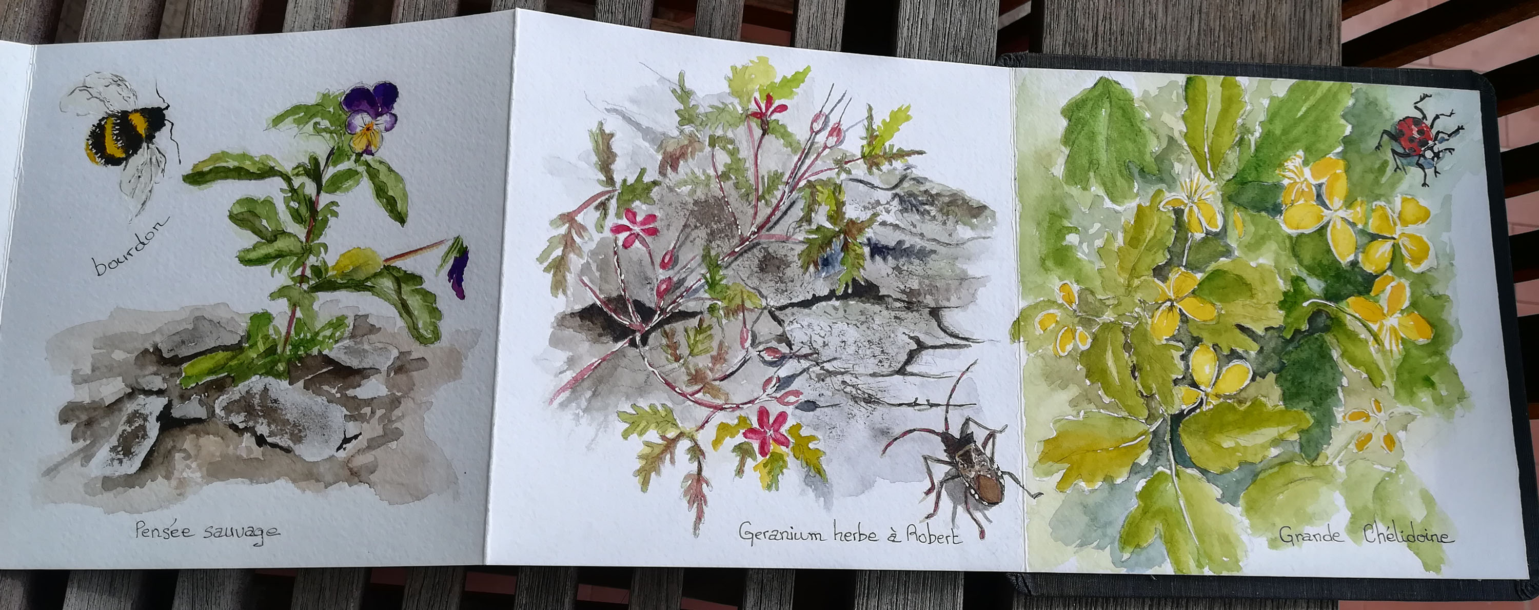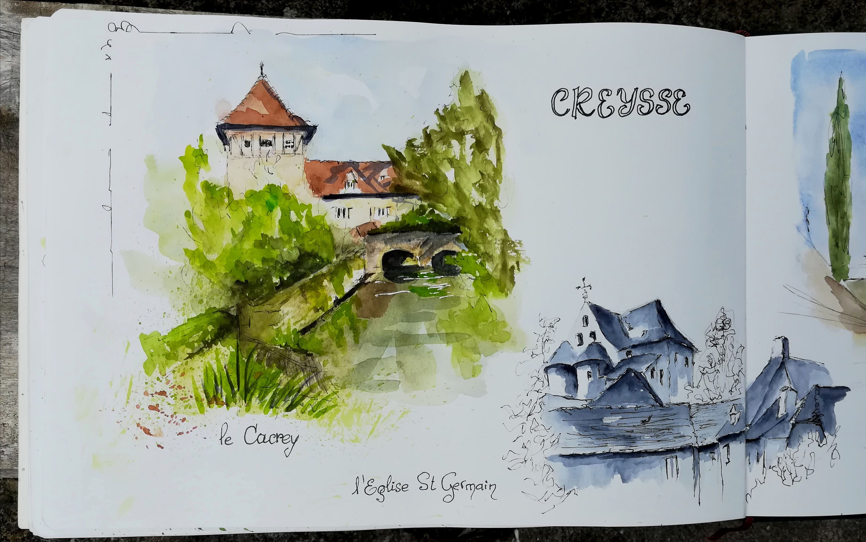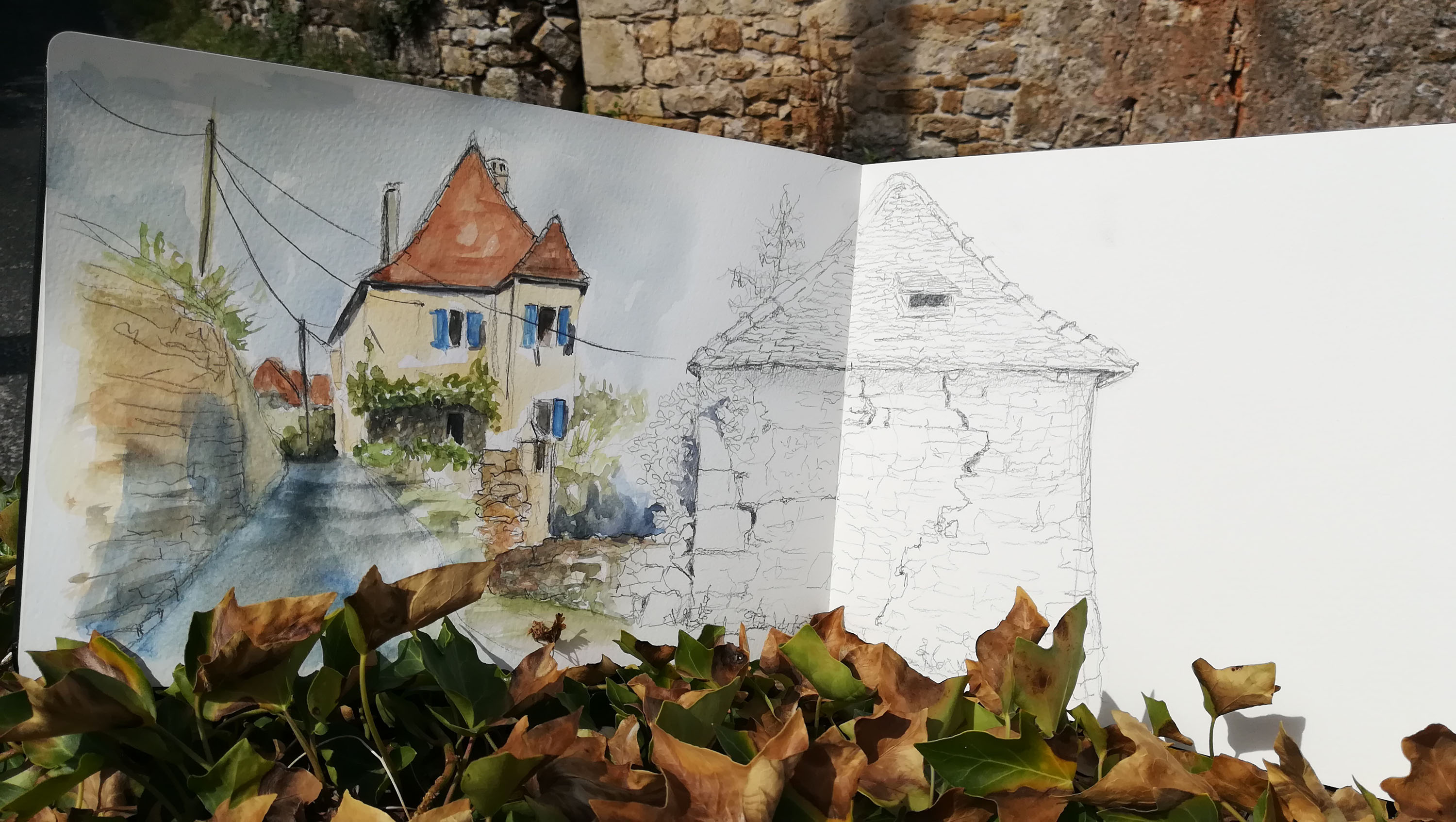 La nature est ma principale source d’inspiration. Je suis membre du groupe Urban Sketcher Rocamadour, je parcours la région pour y croquer paysages, villages et gens du pays.