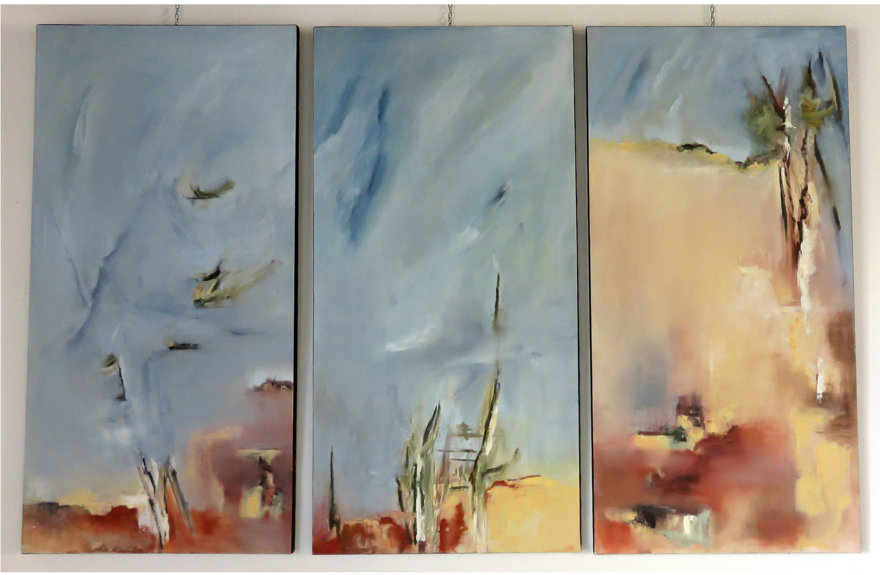 J’utilise l’huile pour les grands formats (paysages à tendance abstraite), l’aquarelle et le dessin pour les formats plus petits.