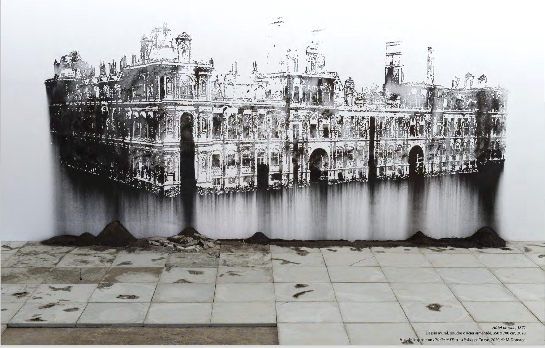 Nicolas Daubanes réalise un travail pluridisciplinaire autour du monde carcéral depuis plus de 10 ans, issu de résidences immersives dans les maisons d’arrêt. Depuis ses dessins à la limaille de fer à ses installations monumentales de béton saboté au sucre, l’artiste s’intéresse au moment combiné de la suspension et de la chute : il s’agit de voir avant l’effondrement, avant la ruine, l’élan vital. La limaille de fer, matière fine et dangereuse, volatile, utilisée dans les dessins et walldrawings, renvoie aux barreaux des prisons, et par extension à l’évasion. Le béton chargé de sucre est inspiré du geste vain des résistants pendant la seconde guerre mondiale pour saboter les constructions du Mur de l’Atlantique. Temporaire et fugitif.